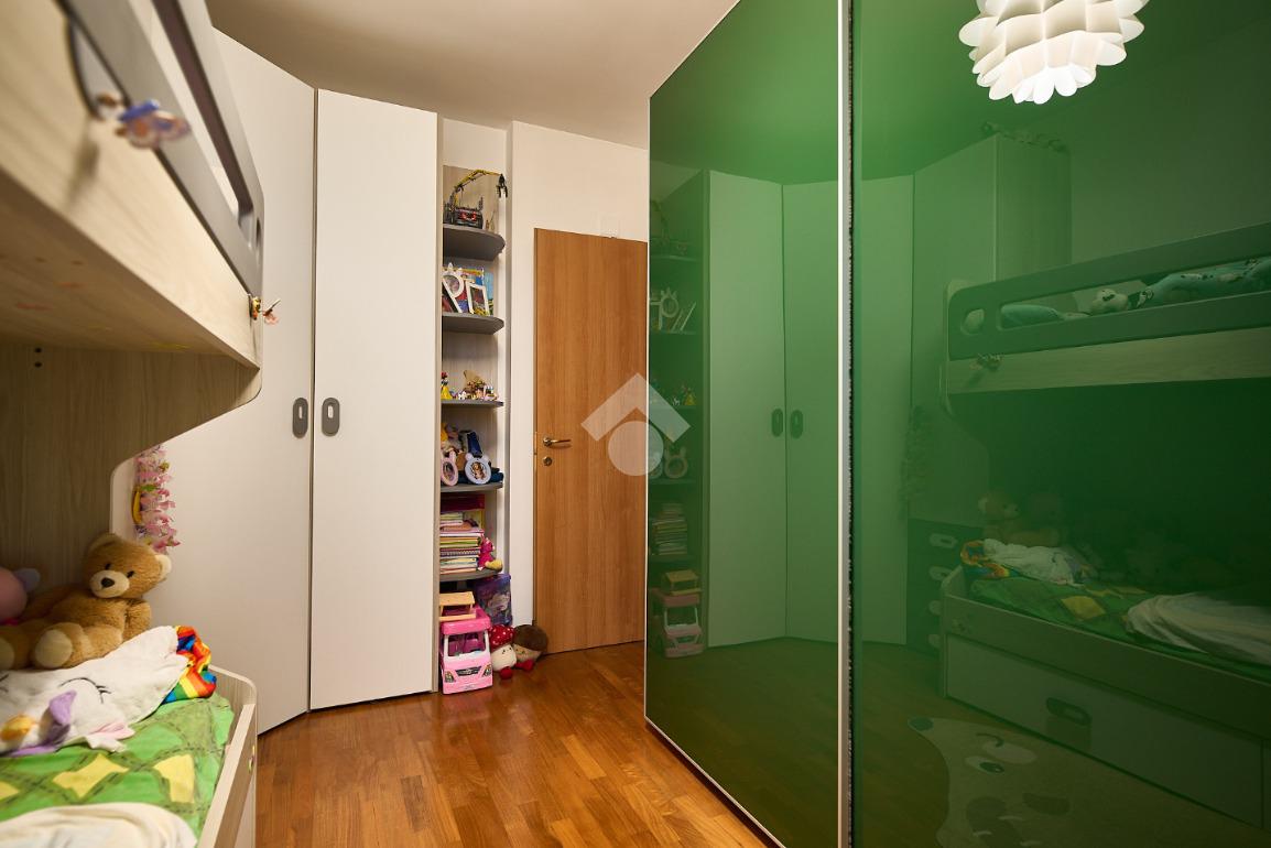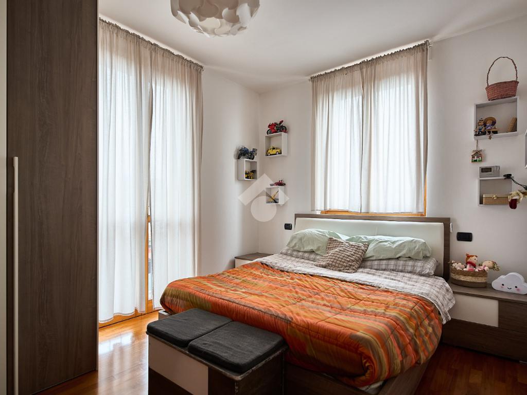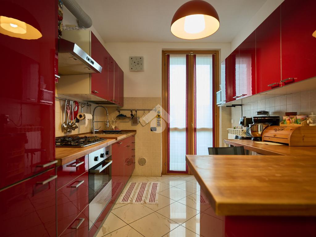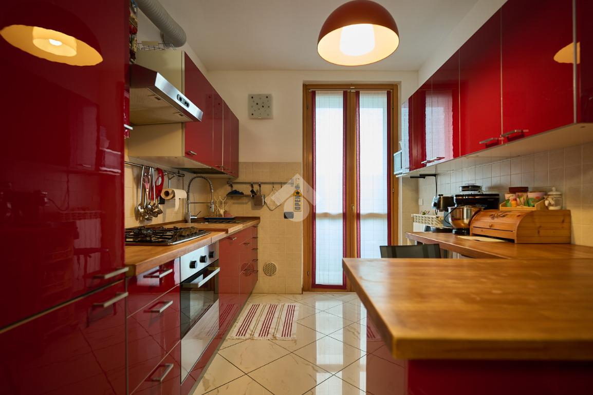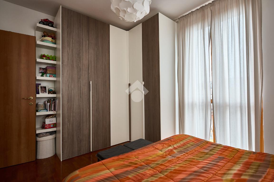 In una zona residenziale tranquilla ed abitata da famiglie. L'appartamento si trova al primo piano di una palazzina costruita nel 2009, è dotato di predisposizione per l'impianto di aria condizionata, serramenti con doppi vetri e persiane in alluminio, impianto di allarme e filodiffusione. L'ingresso è nella zona living con cucina annessa. La zona living è ampia e luminosa , divisa in due aree, una con divano angolare e TV e l'altra con il tavolo da pranzo, ad illuminare tutto è la portafinestra che dà l'accesso al terrazzino loggiato e con zanzariere. La cucina è abitabile per dimensioni e si potrebbe anche dividere dal soggiorno, attualmente è stata montata una penisola che affaccia sulla sala e divide i due ambienti. Dalla zona living si accede al disimpegno che accompagna alle camere ed al bagno. Le camere sono due, una singola ed una matrimoniale con portafinestra e finestra. Il bagno ha la finestra e la doccia. Completano la proprietà la cantina ed il box auto.
