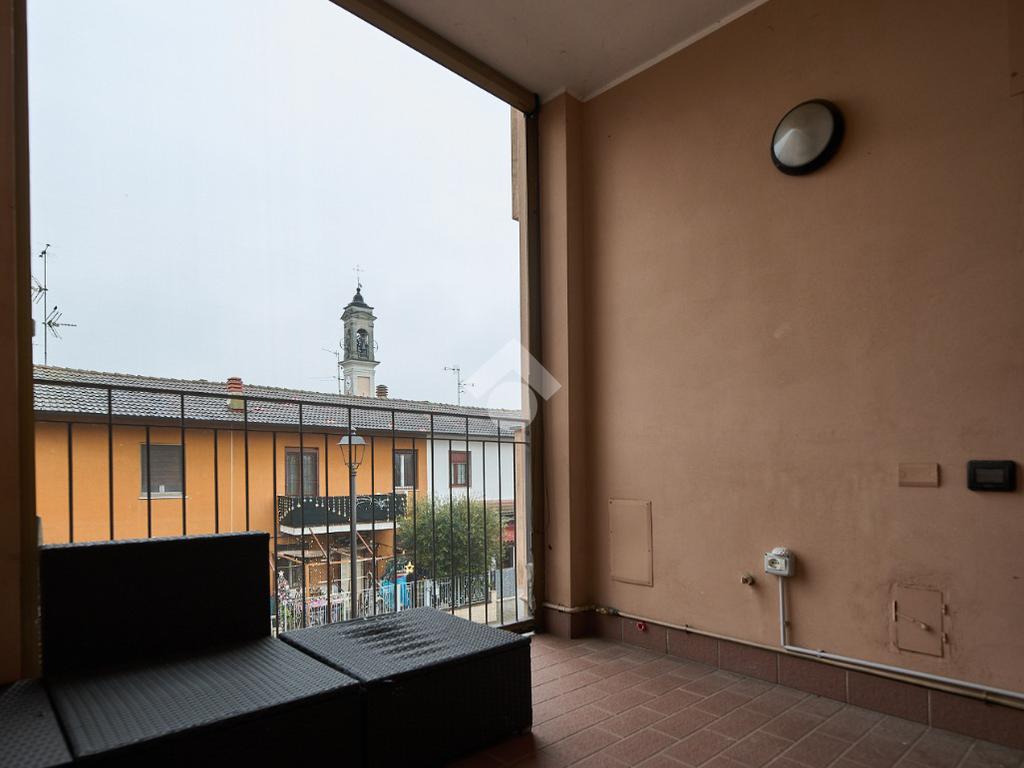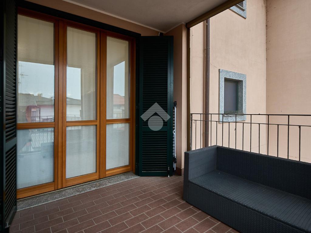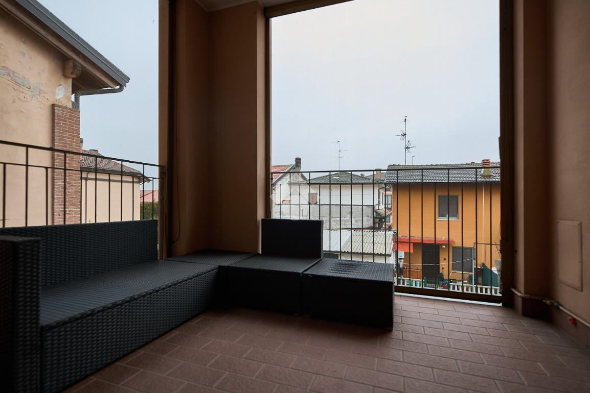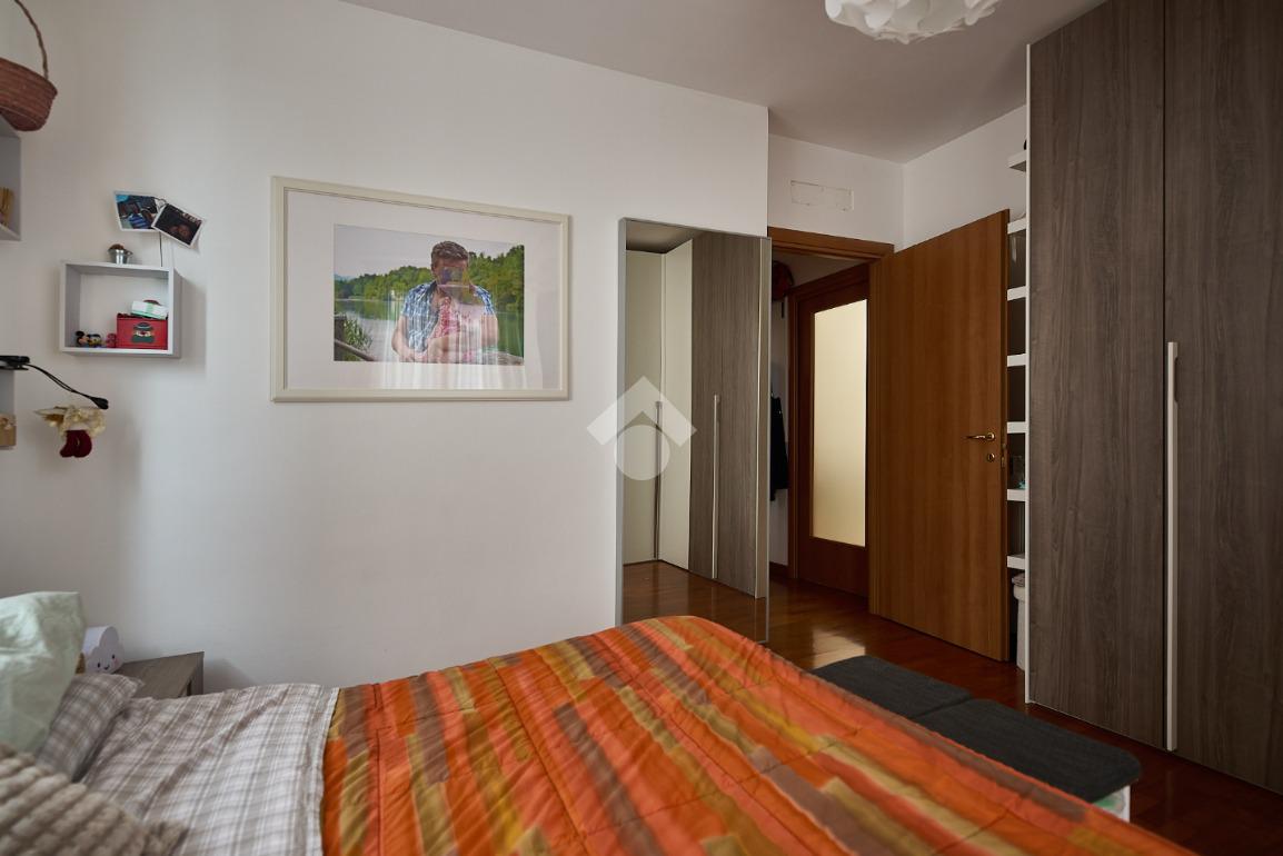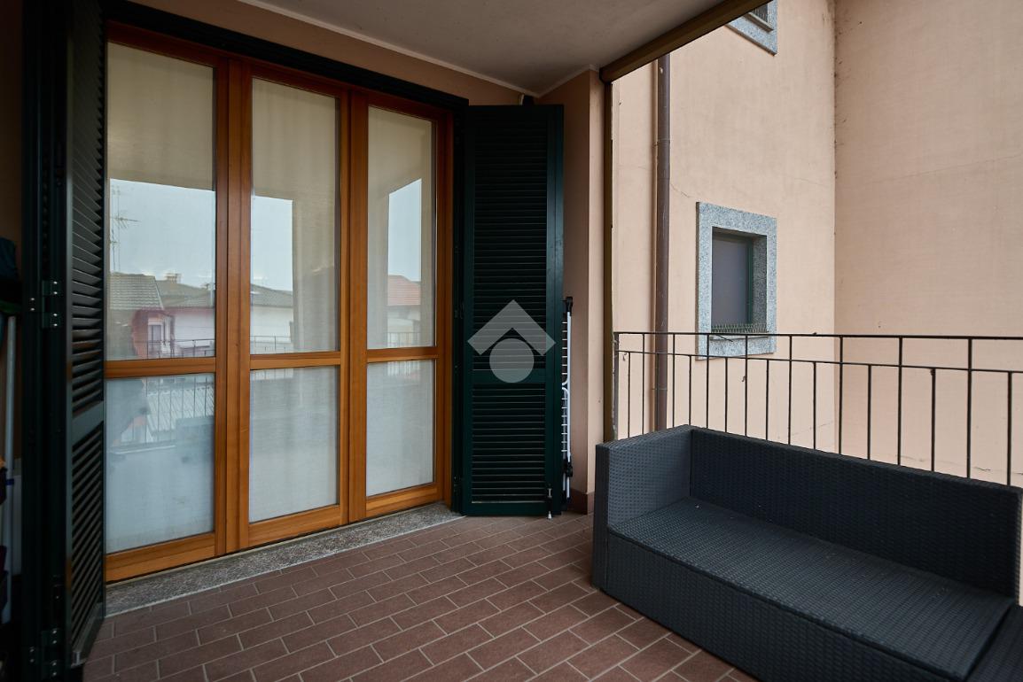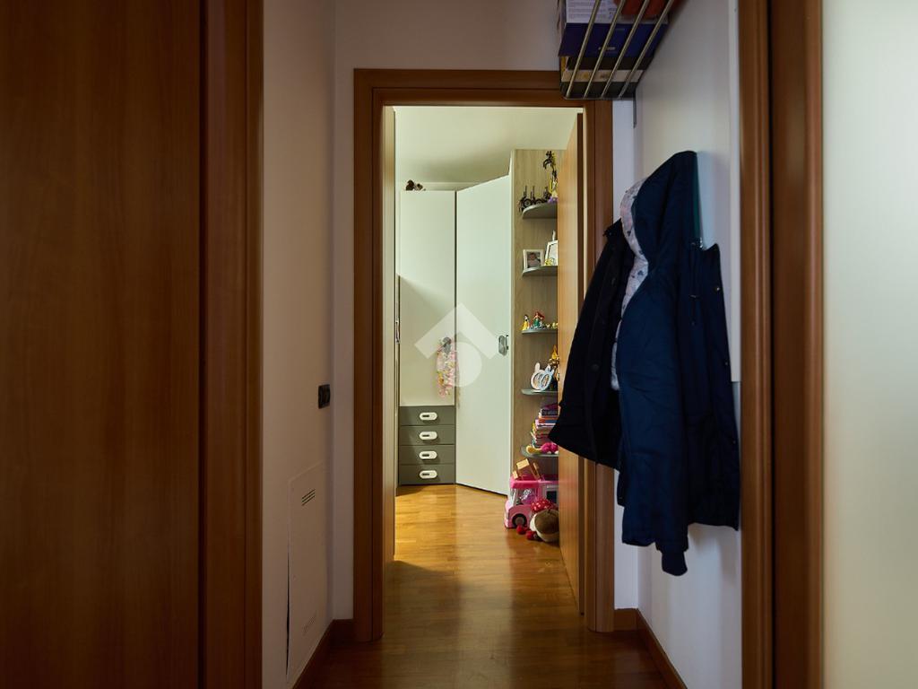 In una zona residenziale tranquilla ed abitata da famiglie. L'appartamento si trova al primo piano di una palazzina costruita nel 2009, è dotato di predisposizione per l'impianto di aria condizionata, serramenti con doppi vetri e persiane in alluminio, impianto di allarme e filodiffusione. L'ingresso è nella zona living con cucina annessa. La zona living è ampia e luminosa , divisa in due aree, una con divano angolare e TV e l'altra con il tavolo da pranzo, ad illuminare tutto è la portafinestra che dà l'accesso al terrazzino loggiato e con zanzariere. La cucina è abitabile per dimensioni e si potrebbe anche dividere dal soggiorno, attualmente è stata montata una penisola che affaccia sulla sala e divide i due ambienti. Dalla zona living si accede al disimpegno che accompagna alle camere ed al bagno. Le camere sono due, una singola ed una matrimoniale con portafinestra e finestra. Il bagno ha la finestra e la doccia. Completano la proprietà la cantina ed il box auto.