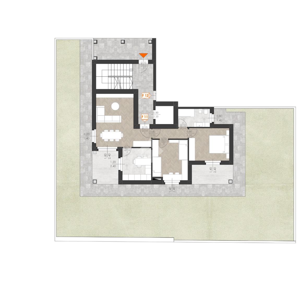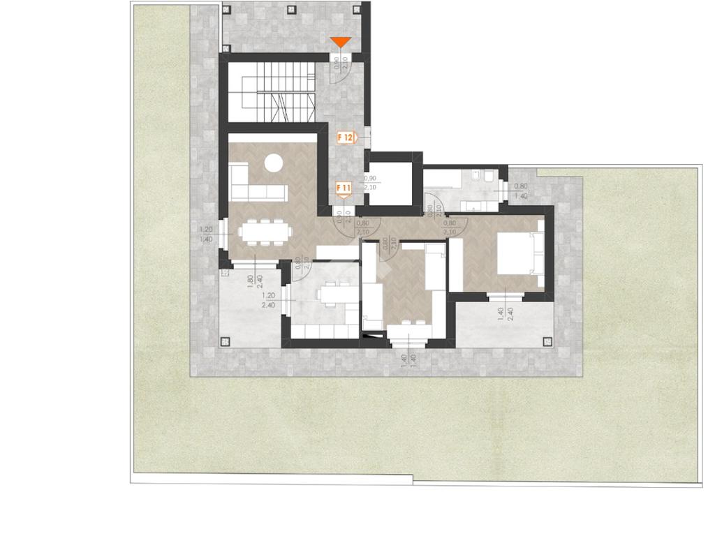 TRE LOCALI CON GIARDINO E PORTICO, POSSIBILITA' DI ACQUISTARE IL BOX AUTO. APPARTAMENTO F-11