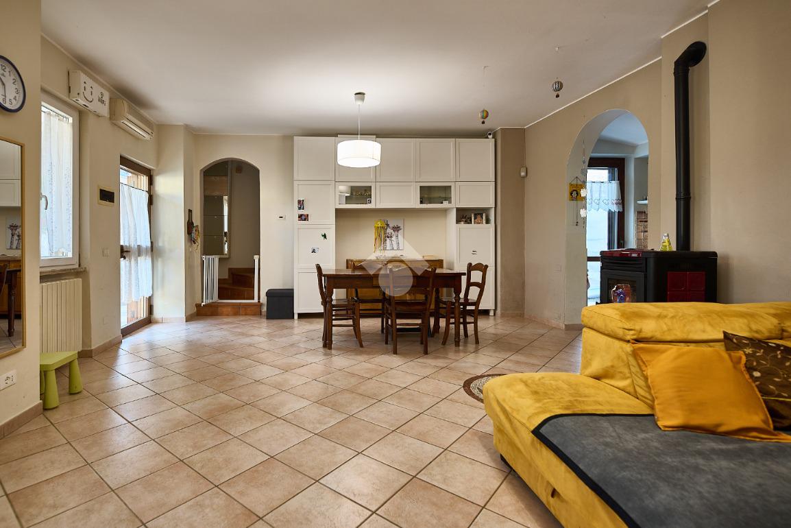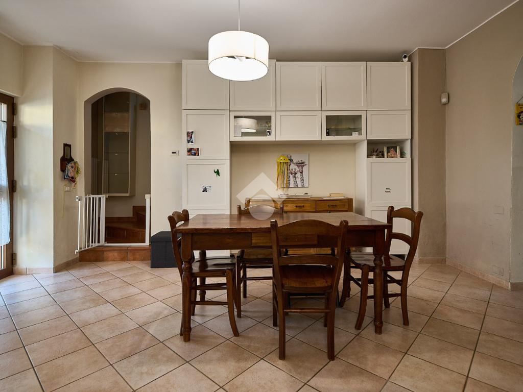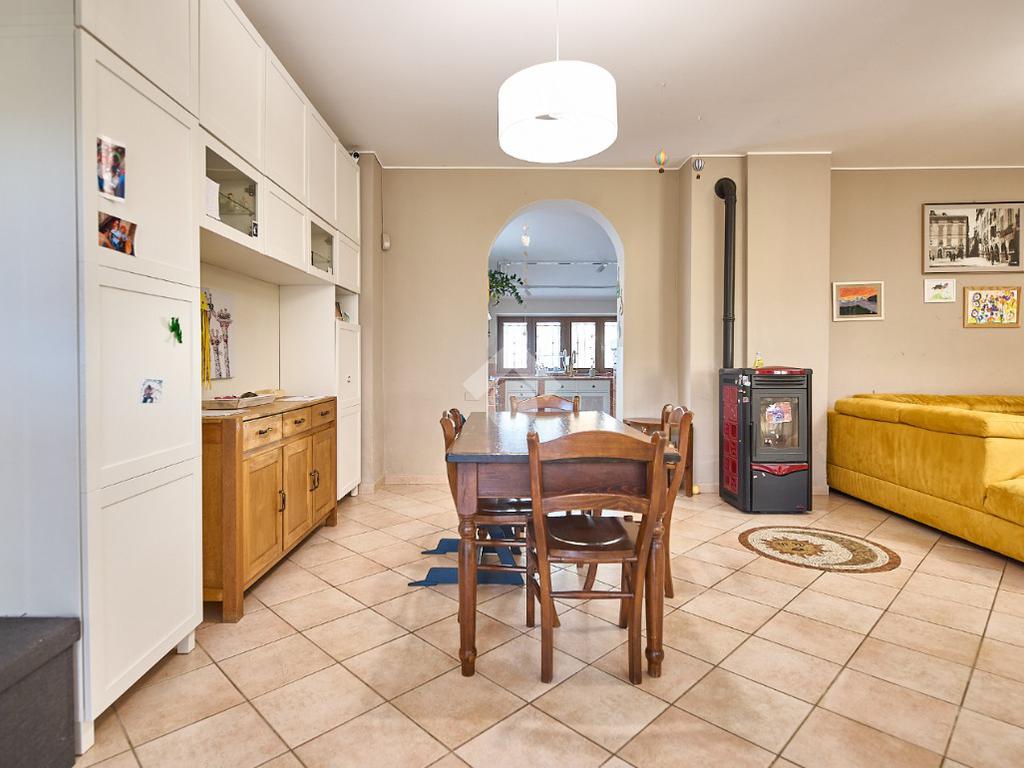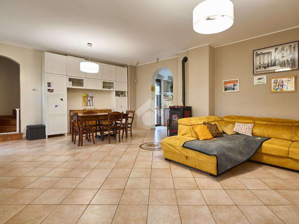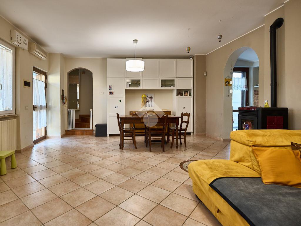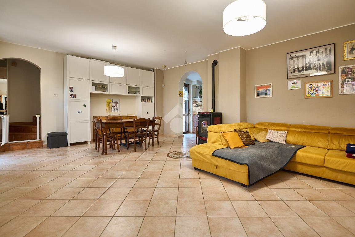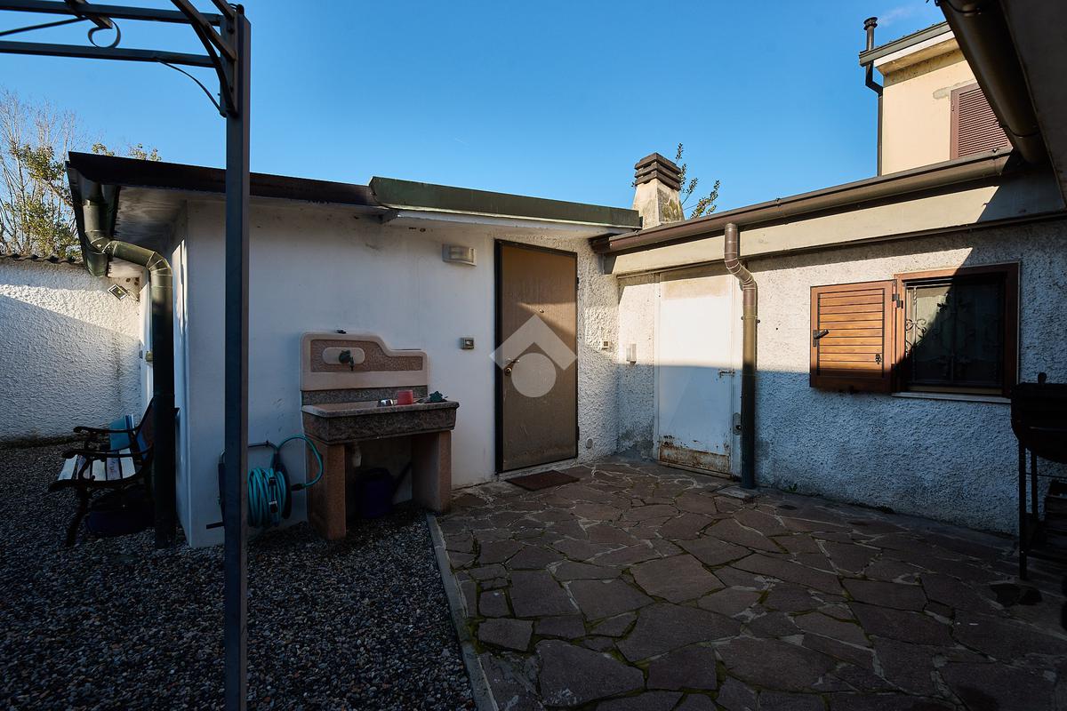 In centro paese, una posizione tranquilla e non isolata, ben illuminata anche di sera. La casa è stata oggetto di diverse opere di ristrutturazione e manutenzione straordinaria dal 2012 ad oggi. Nel corso degli anni sono stati sostituiti i serramenti, che sono in alluminio e con doppi vetri, sono stati rifatti i bagni, è stata sostituita la caldaia e nel 2020 è stato rifatto il tetto. L'abitazione è circondata dal suo giardino privato, in parte verde e in parte piastrellato, ed è distribuita su due piani. Nel giardino anteriore c'è lo spazio per parcheggiare l'auto ed è presente un albero sul quale è stata costruita una casetta, il sogno di ogni piccolo bambino. Il porticato davanti al portoncino d'ingresso è uno spazio utile per riporre le biciclette o riposare nelle stagioni più calde. L'ingresso è nel salone doppio, luminoso e ampio, adatto per chi ama organizzare momenti di convivialità a casa propria. Dal salone si accede alla cucina bitabile in muratura con le finestre che affacciano sul giardino posteriore. La cucina è collegata alla lavanderia ed al locale hobby. Il locale hobby ha anche ingresso indipendente dal giardino, quindi è possibile utilizzarla come depandance (dato che è collegata alla lavanderia) o come studio per chi esercita la libera professione. Dalla sala una scala in muratura accompagna al primo piano dove si trovano due camere da letto e un bagno. Nel sottoscala è presente un ripostiglio Le camere sono entrambe spaziose e con la portafinestra che dà accesso al balcone. Sia al piano terra che al primo piano è presente la stufa a pellet. Il giardino, nella parte posteriore ospita una casetta degli attrezzi. Nel complesso la casa si presenta bene ed è pronta per essere abitata.