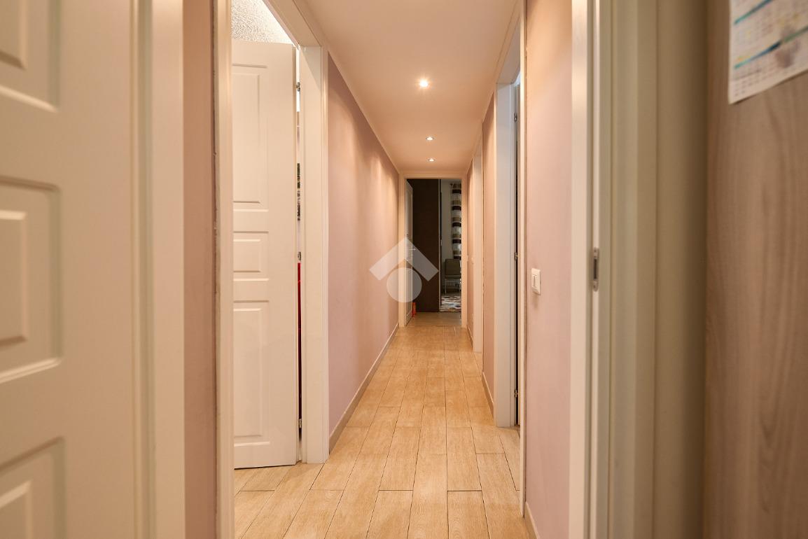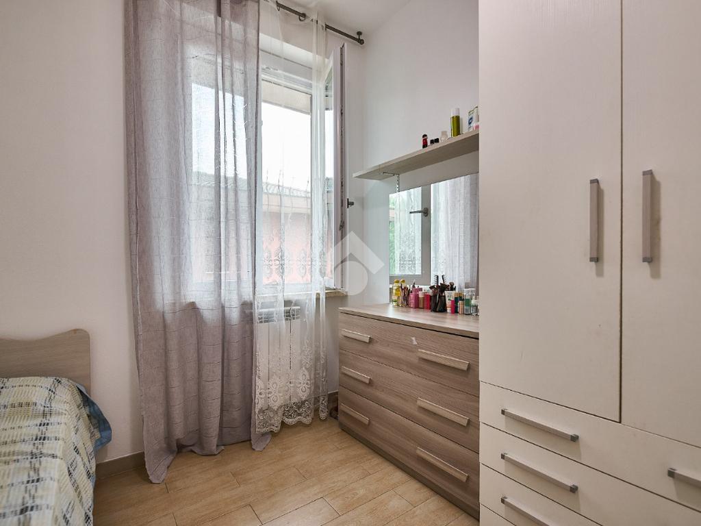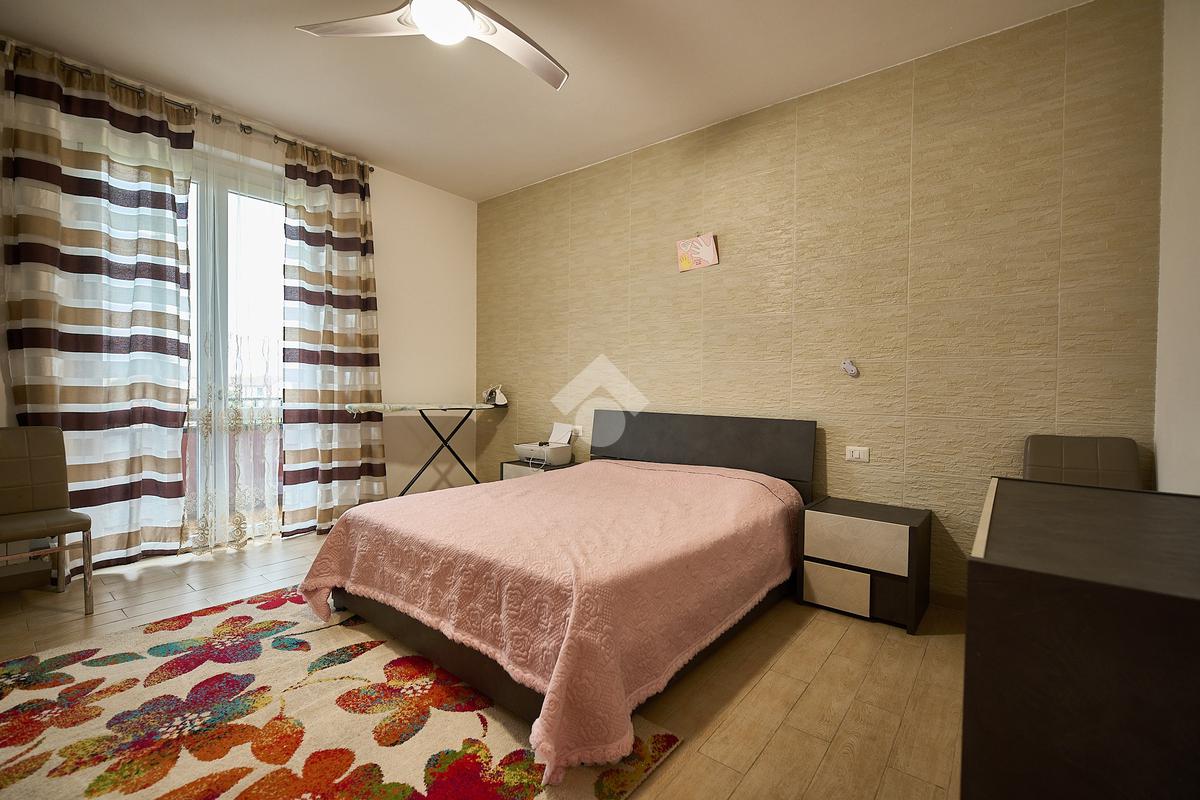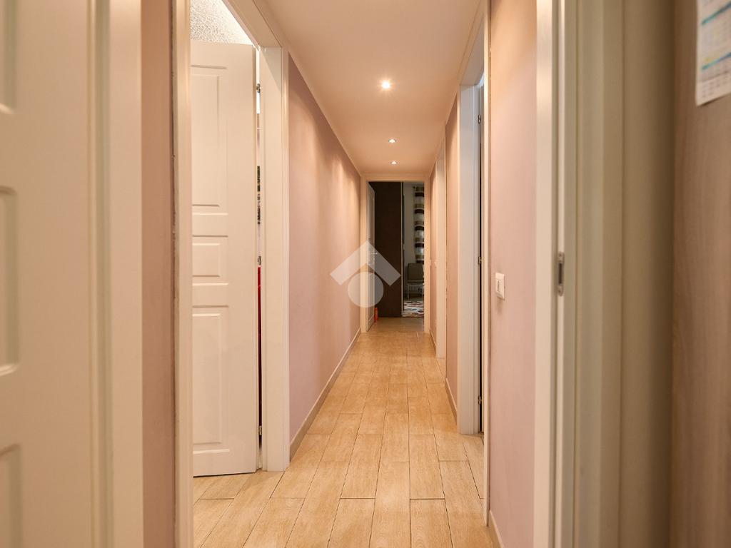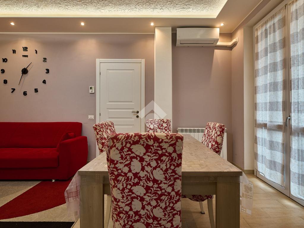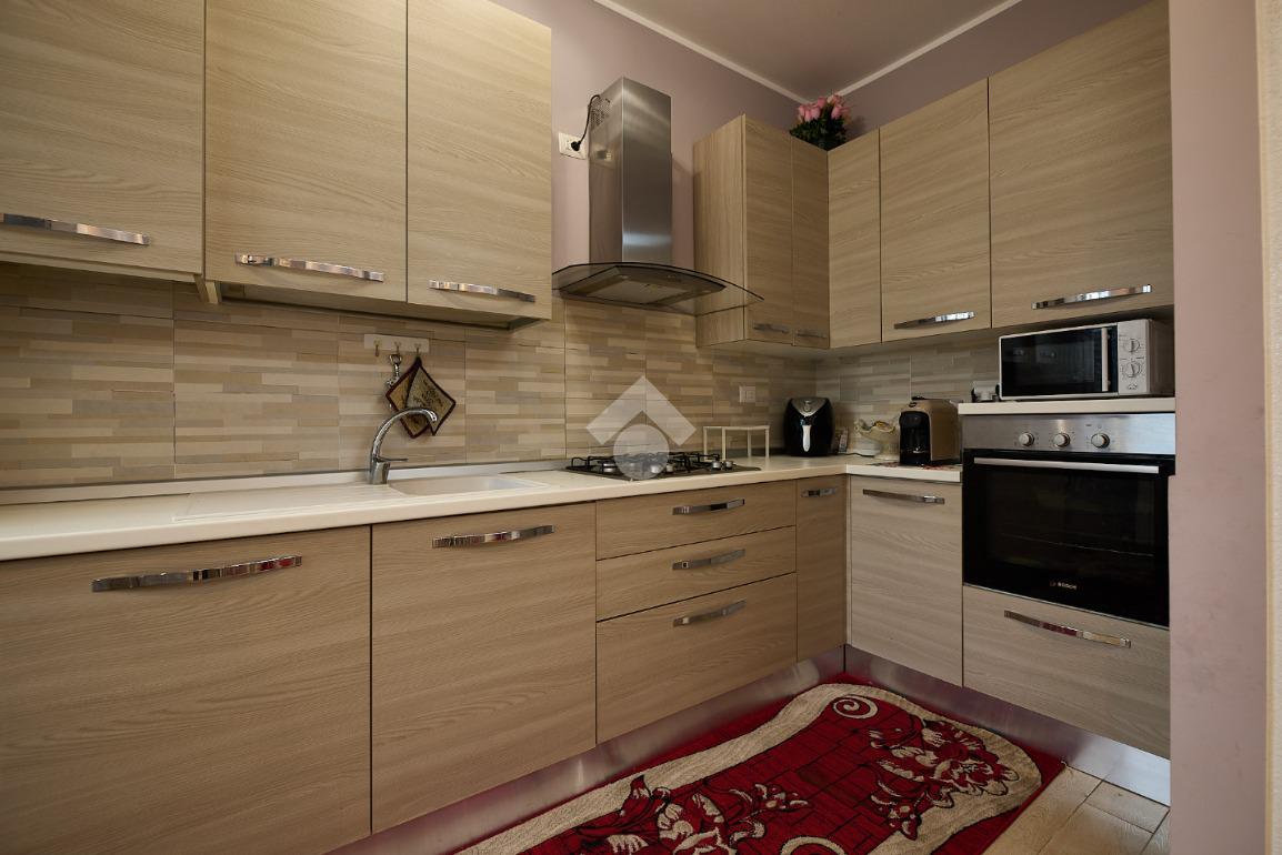 Nel centro del paese, sopra i portici e vicino al polo scolastico, tutti i servizi sono raggiungibili a piedi in un paio di minuti. La palazzina è stata costruita negli anni '80 ed ha basse spese di condominio. L'appartamento, situato al secondo ed ultimo piano, è stato ristrutturato nel 2017 ed ha il riscaldamento autonomo, l'impianto di aria condizionata e la caldaia a condensazione. Durante i lavori di ristrutturazione sono stati cambiati i serramenti, le porte interne, i rivestimenti di bagno e cucina e la pavimentazione di tutto l'appartamento, inoltre nel disimpegno della zona notte è stato montato un controsoffitto ed è stato ricavato un ampio spazio ad uso ripostiglio. L'ingresso è nel disimpegno, attrezzato per riporre scarpe e cappotti, che accompagna alla zona giorno con annesso cucinotto. Un locale ampio e luminoso in cui è stato creato un gioco di luci. Dalla zona giorno si accede al disimpegno della zona notte che accompagna alle camere ed al bagno. Il bagno è finestrato ed ha la doccia, c'è anche lo spazio per lavatrice e asciugatrice. Le camere da letto sono tre, due matrimoniali ed una singola. Completa la proprietà il box auto.
