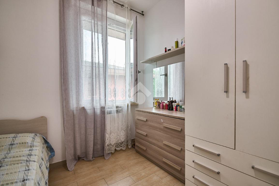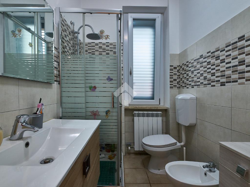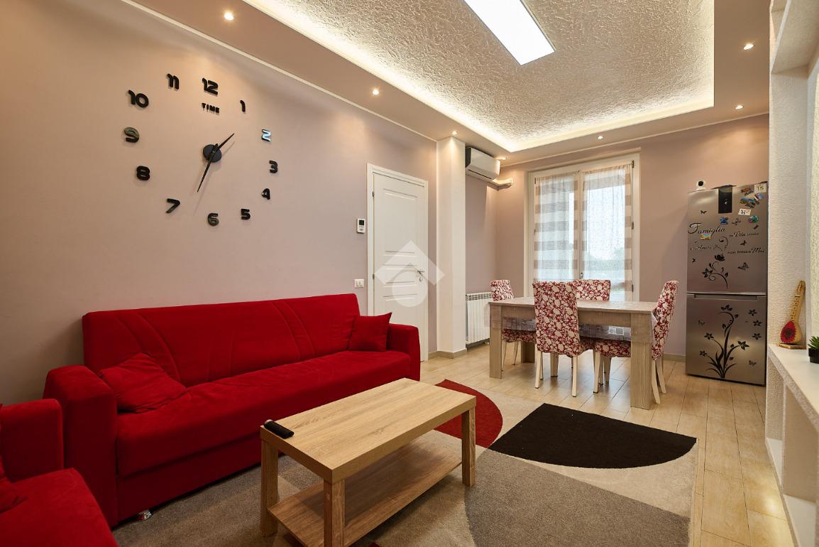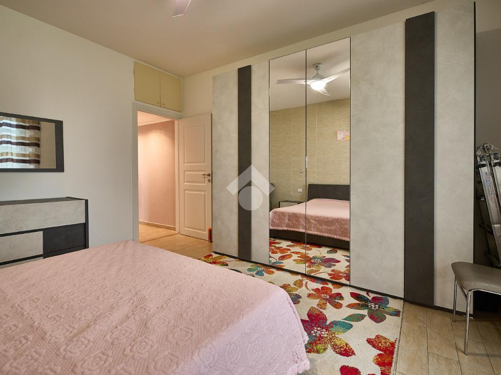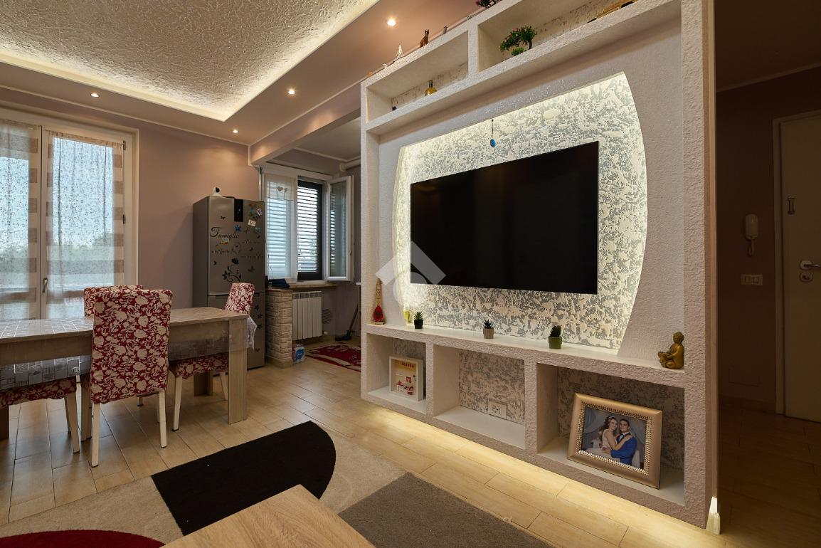 Nel centro del paese, sopra i portici e vicino al polo scolastico, tutti i servizi sono raggiungibili a piedi in un paio di minuti. La palazzina è stata costruita negli anni '80 ed ha basse spese di condominio. L'appartamento, situato al secondo ed ultimo piano, è stato ristrutturato nel 2017 ed ha il riscaldamento autonomo, l'impianto di aria condizionata e la caldaia a condensazione. Durante i lavori di ristrutturazione sono stati cambiati i serramenti, le porte interne, i rivestimenti di bagno e cucina e la pavimentazione di tutto l'appartamento, inoltre nel disimpegno della zona notte è stato montato un controsoffitto ed è stato ricavato un ampio spazio ad uso ripostiglio. L'ingresso è nel disimpegno, attrezzato per riporre scarpe e cappotti, che accompagna alla zona giorno con annesso cucinotto. Un locale ampio e luminoso in cui è stato creato un gioco di luci. Dalla zona giorno si accede al disimpegno della zona notte che accompagna alle camere ed al bagno. Il bagno è finestrato ed ha la doccia, c'è anche lo spazio per lavatrice e asciugatrice. Le camere da letto sono tre, due matrimoniali ed una singola. Completa la proprietà il box auto.