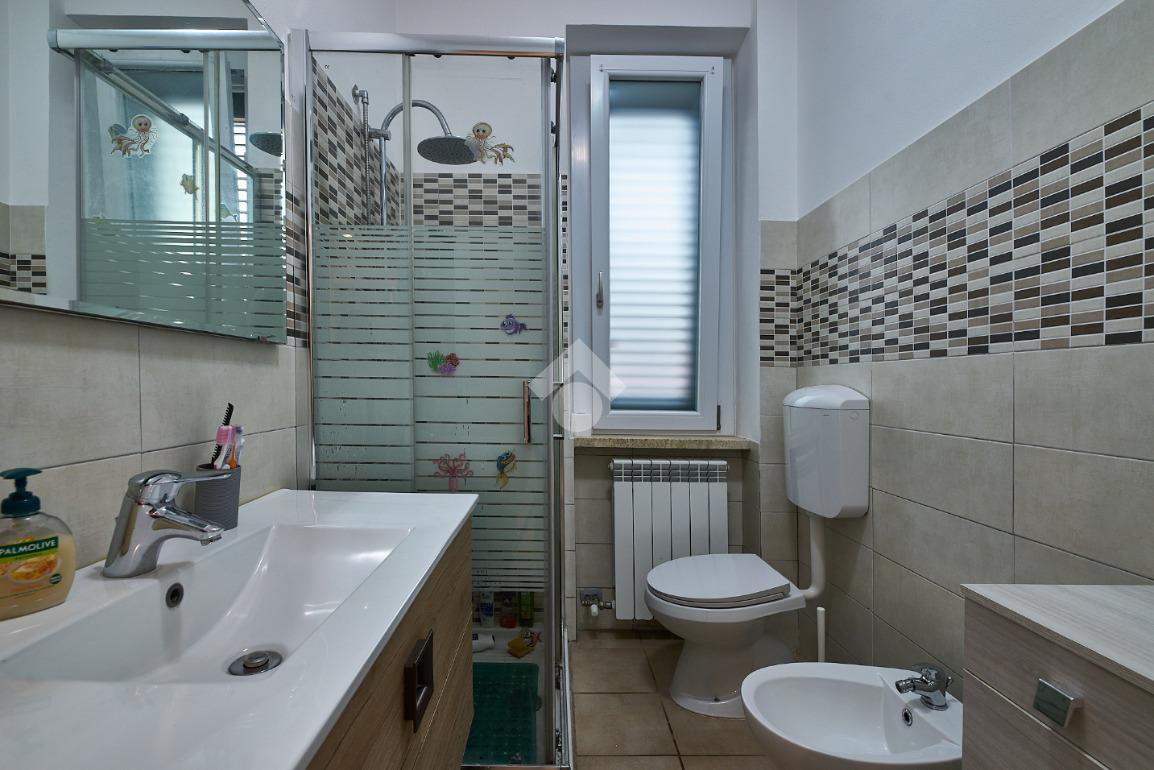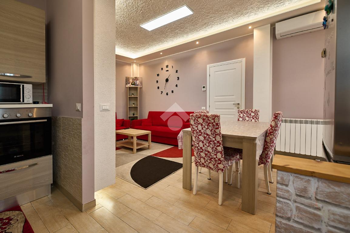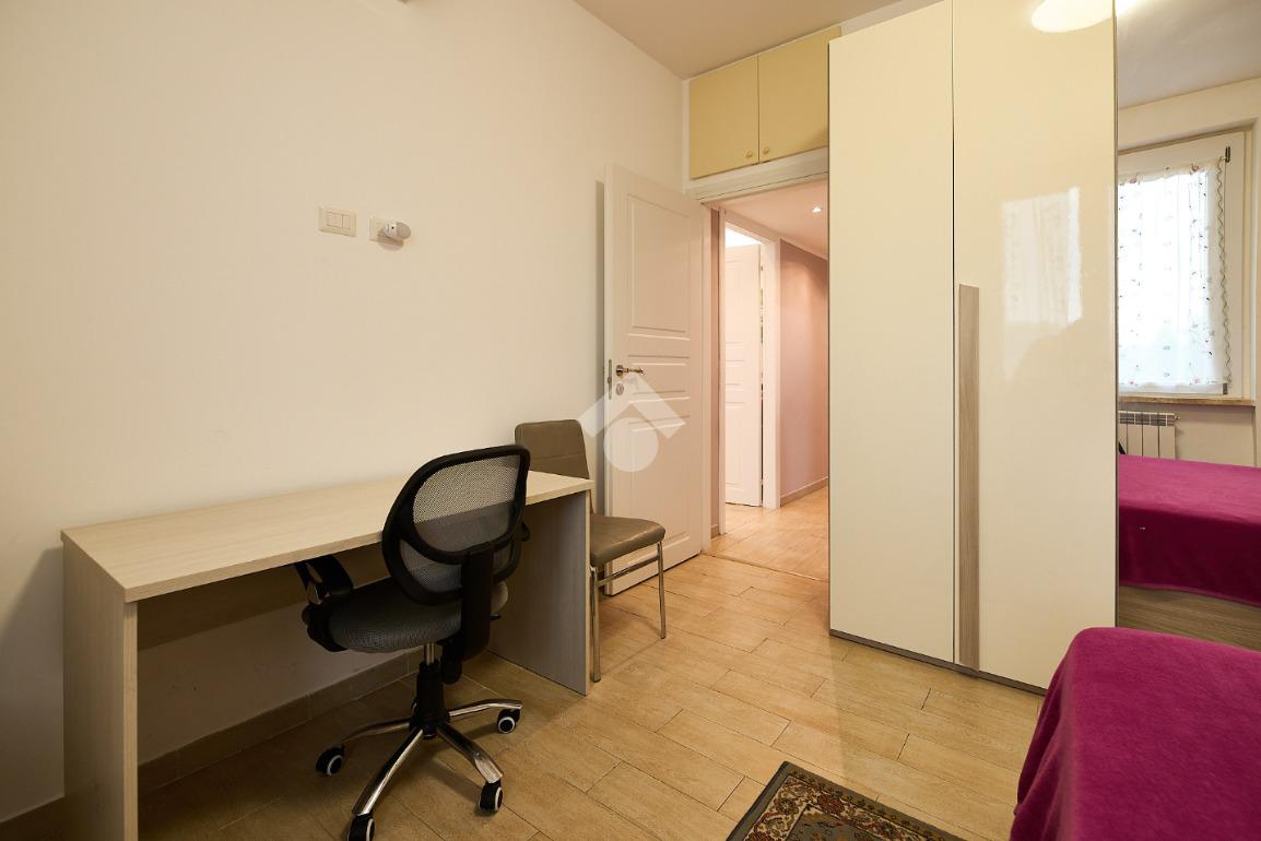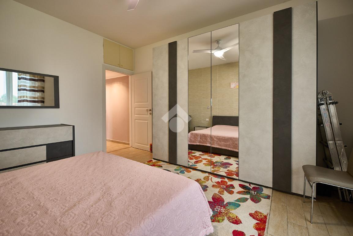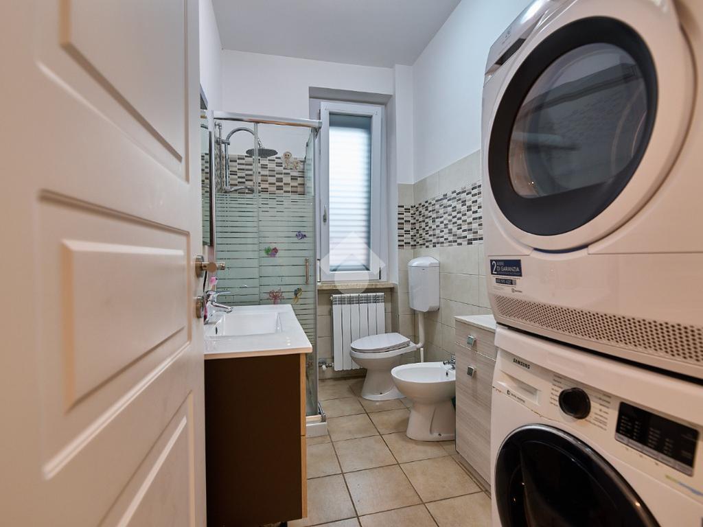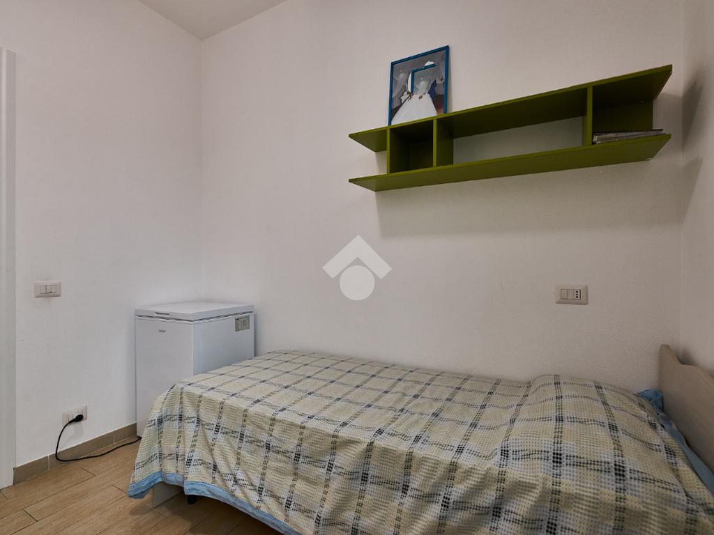 Nel centro del paese, sopra i portici e vicino al polo scolastico, tutti i servizi sono raggiungibili a piedi in un paio di minuti. La palazzina è stata costruita negli anni '80 ed ha basse spese di condominio. L'appartamento, situato al secondo ed ultimo piano, è stato ristrutturato nel 2017 ed ha il riscaldamento autonomo, l'impianto di aria condizionata e la caldaia a condensazione. Durante i lavori di ristrutturazione sono stati cambiati i serramenti, le porte interne, i rivestimenti di bagno e cucina e la pavimentazione di tutto l'appartamento, inoltre nel disimpegno della zona notte è stato montato un controsoffitto ed è stato ricavato un ampio spazio ad uso ripostiglio. L'ingresso è nel disimpegno, attrezzato per riporre scarpe e cappotti, che accompagna alla zona giorno con annesso cucinotto. Un locale ampio e luminoso in cui è stato creato un gioco di luci. Dalla zona giorno si accede al disimpegno della zona notte che accompagna alle camere ed al bagno. Il bagno è finestrato ed ha la doccia, c'è anche lo spazio per lavatrice e asciugatrice. Le camere da letto sono tre, due matrimoniali ed una singola. Completa la proprietà il box auto.
