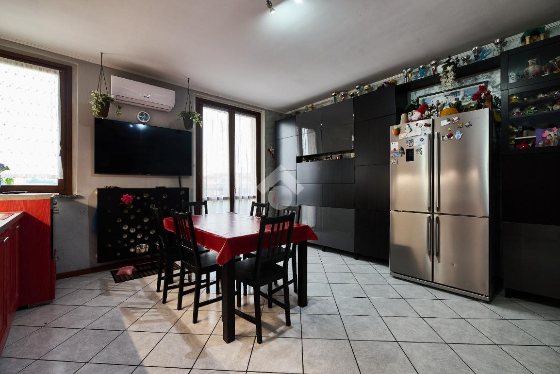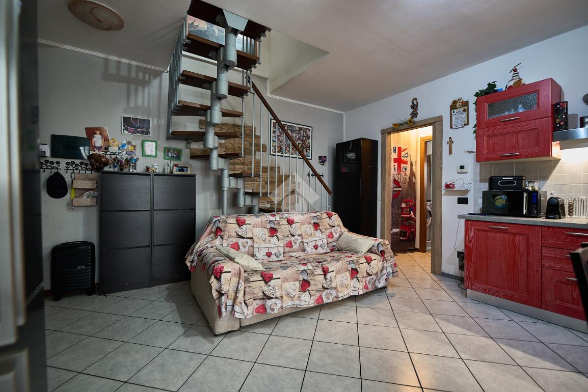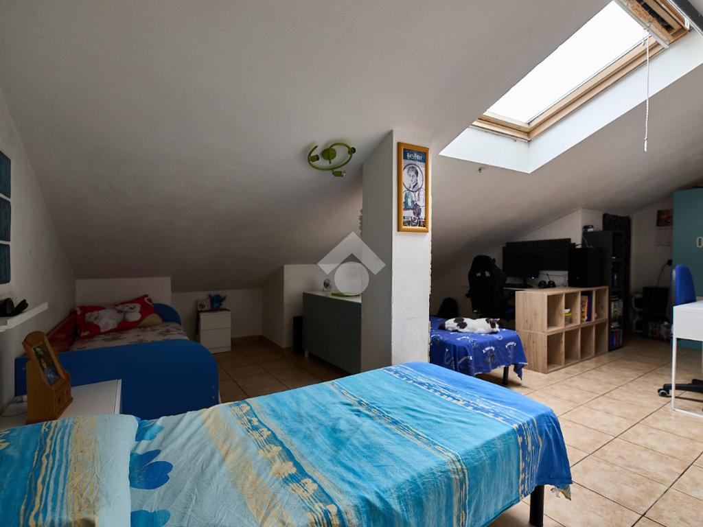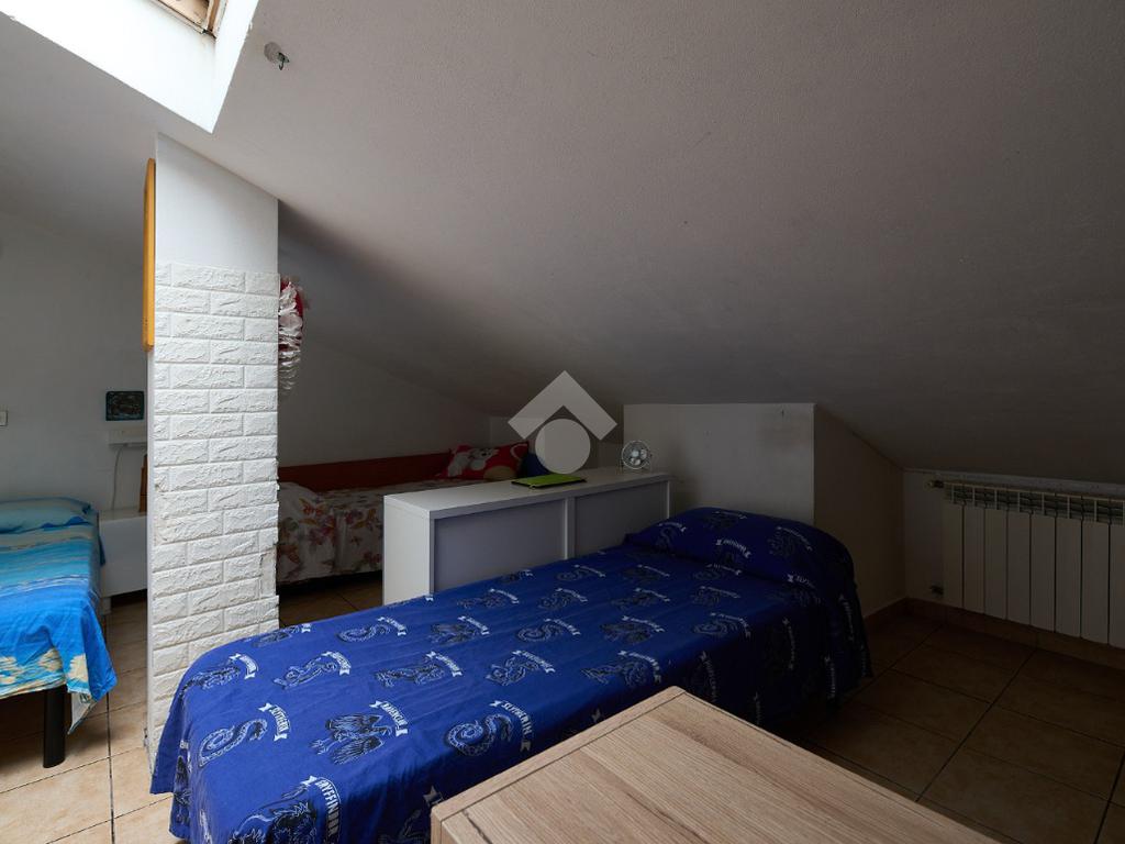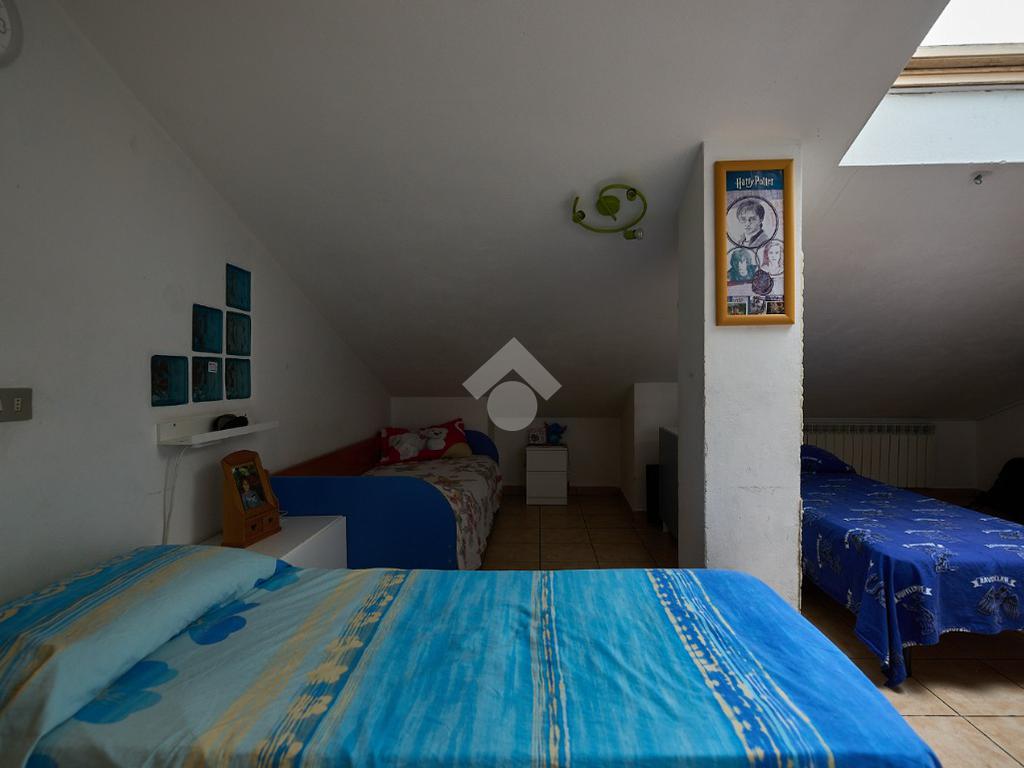 In Via Quaini, vicino al supermercato, il centro del paese è raggiungibile a piedi in pochi minuti. L'appartamento è disposto su due livelli e si trova al terzo ed ultimo piano di una palazzina costruita nel 2006 dotata di ascensore. L'ingresso è nella zona living, uno spazio ampio e luminoso con portafinestra che dà accesso al terrazzino, l'angolo cottura è lineare e davanti vi è stato posizionato il tavolo da pranzo, l'ambiente è stato pensato per poter accogliere anche un comodo divano e la parete tv. Dalla zona giorno si accede al disimpegno ed alla scala che accompagna al piano mansardato. Il disimpegno porta alla camera da letto matrimoniale ed al bagno. La camera da letto è ampia ed è presente la portafinestra che dà accesso al secondo balcone. Il bagno ha la finestra e la doccia, e c'è lo spazio per posizionare lavatrice e asciugatrice. Al piano mansardato è presente un unico locale open space adibito a camera per ragazzi e un bagno/lavanderia con doccia. Completano la proprietà il posto auto e la cantina.