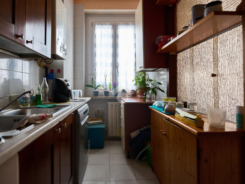 In centro paese, tutti i servizi sono raggiungibili a piedi, il polo scolastico è nelle vicinanze e il supermercato sotto casa. Lì'appartamento si trova al primo piano di una palazzina degli anni '80 e sarà libero a Dicembre 2025. L'ingresso è nella zona living con cucinino e portafinestra che dà accesso al balcone. Dalla zona giorno si accede al disimpegno che accompagna a tutte le altre stanze. Ci sono un bagno finestrato con vasca, uno studio e due camere da letto matrimoniali. Nello studio c'è la portafinestra che dà accesso al terrazzino di 15 Mq, uno spazio riservato e sfruttabile, piacevole per una cena con gli amici o come spazio per i bambini. Nel complesso l'appartamento è abitabile, anche se potrebbe servire qualche lavoro di manutenzione. I serramenti sono stati sostituiti e sono in PVC con doppio vetro. Completa la proprietà il box auto singolo.