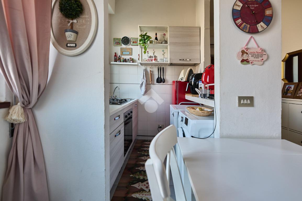 In centro paese, vicino a tutti i principali servizi ed alla fermata dell'autobus che è raggiungibile a piedi, così come supermercato e negozi. La palazzina ha spese condominiali contenute e poche unità abitative. L'appartamento si trova al piano terra ed ha ingresso in un piccolo corridoio che accompagna a tutte le stanze. L'ambiente living è ben tenuto ed ha il cucinino, è luminoso per via delle tre finestre, Il bagno ha la finestra e la vasca e la camera da letto ha dimensioni matrimoniali anche se attualmente è adibita a sala da pranzo. Completa la proprietà un piccolo box auto.