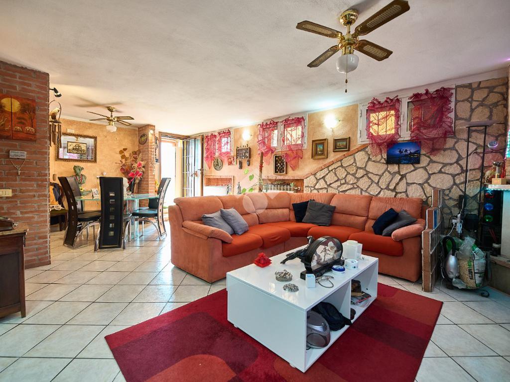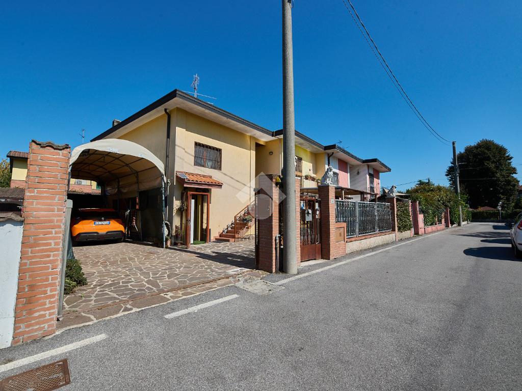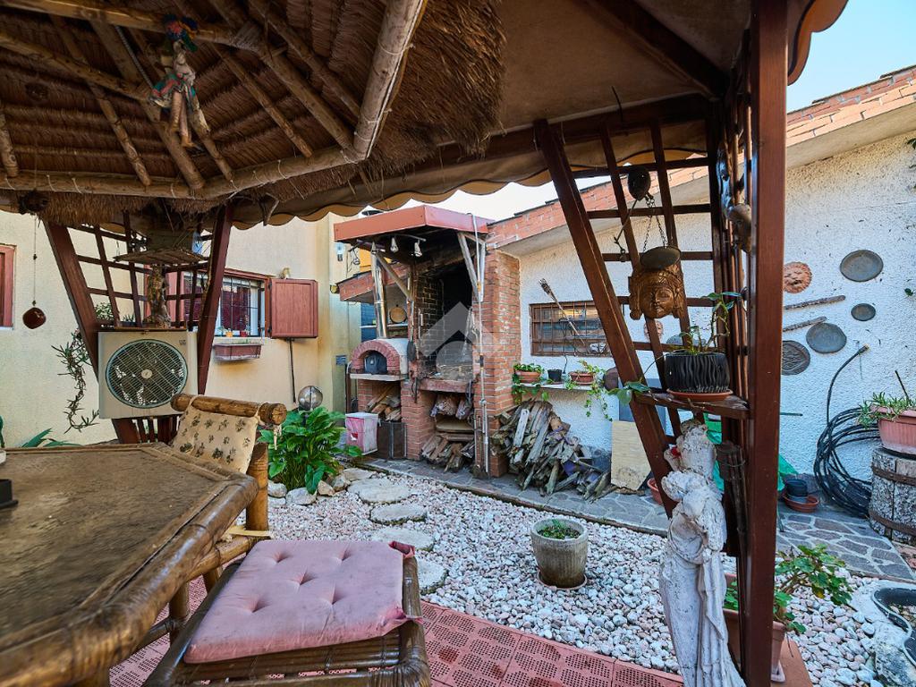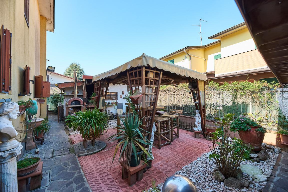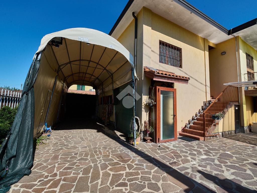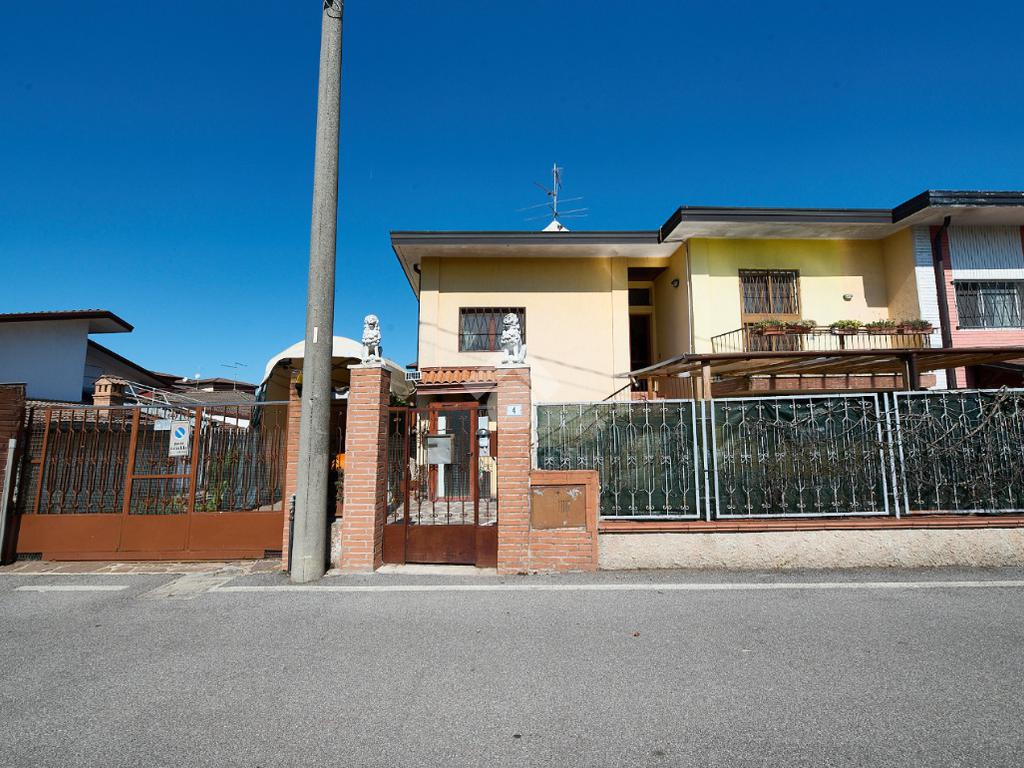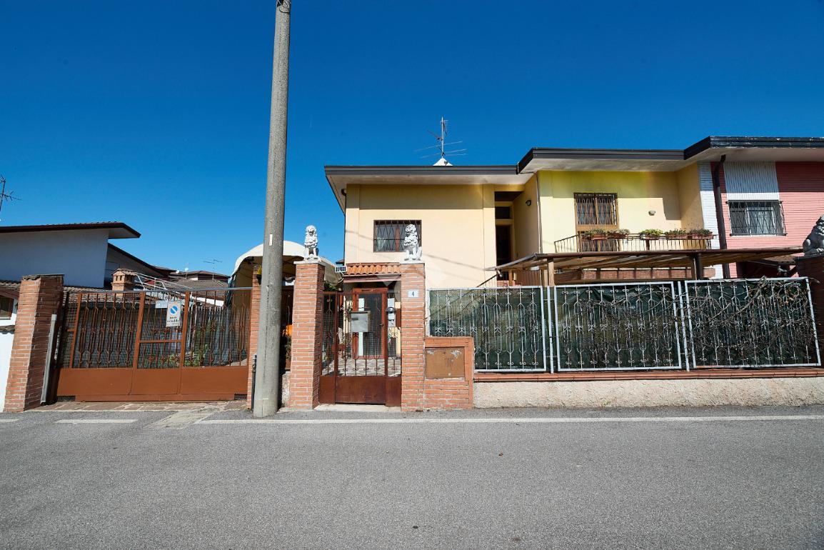 In Via Olanda, il centro del paese è raggiungibile in pochi minuti, la zona, di sole ville, è tranquilla e ben abitata. Costruita alla fine degli anni '60, a partire dal 2009 è stata oggetto di lavori volti all'efficientamento energetico della struttura. Tra i lavori eseguiti sono presenti il cappotto termico,i serramenti interni ed esterni, l'impianto fotovoltaico da 3 KW, inoltre è stato installato il sistema di videosorveglianza. La casa è disposta su due piani, attualmente uniti da scala interna, anche se ogni piano ha anche ingresso indipendente, è quindi possibile ottenere due unità abitative distinte, una al piano terra ed una al primo piano. Attualmente al piano terra ci sono un soggiorno doppio con camino, la cucina abitabile, il bagno e la lavanderia, data l'ampia metratura è possibile dividere il soggiorno e ricavare la camera da letto. Al piano primo ci sono tre camere da letto, la cucina abitabile ed il bagno, è possibile sfruttare gli ambienti a proprio piacimento, utilizzando una camera per ampliare la zona giorno. Tra i punti forti di questa soluzione abitativa c'è lo spazio esterno di circa 200 mq che si sviluppa su tre lati ed è piastrellato nella parte frontale e laterale, invece sul retro è stato messo un forno a legna, un barbecue e una zona per il pranzo. Lateralmente è presente il posto auto, attualmente è stata montata una struttura rimuovibile per riparare l'auto. Nel complesso l'immobile si presenta in buone condizioni e necessiterebbe di qualche lavoro per essere adattato ad esigenze di tipo personale. Completa la proprietà il box auto all'interno del cortile privato.