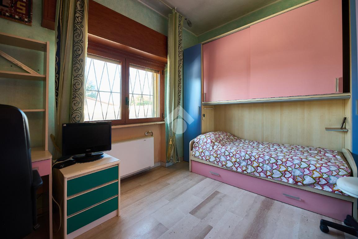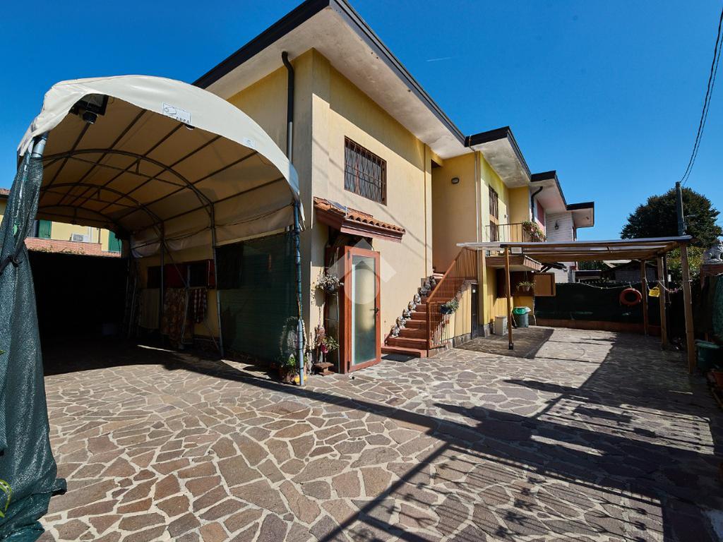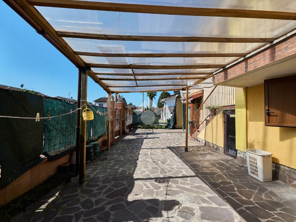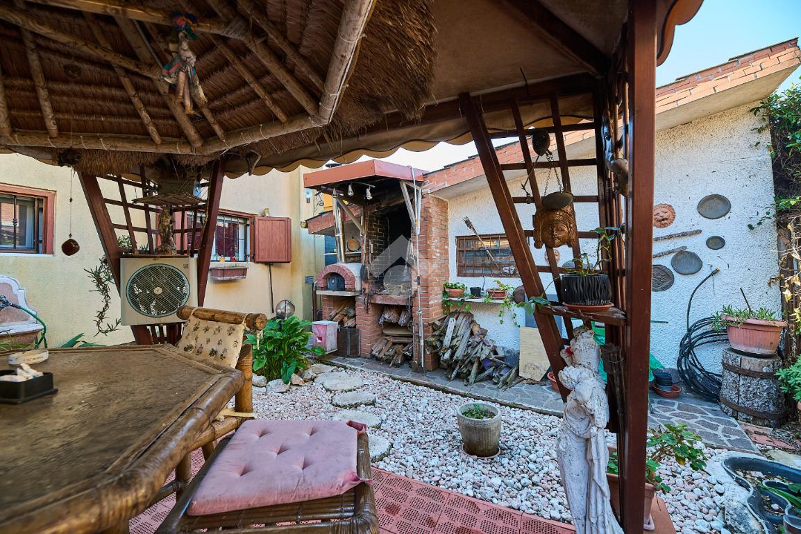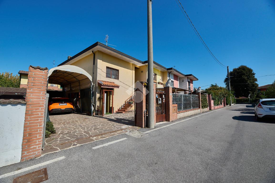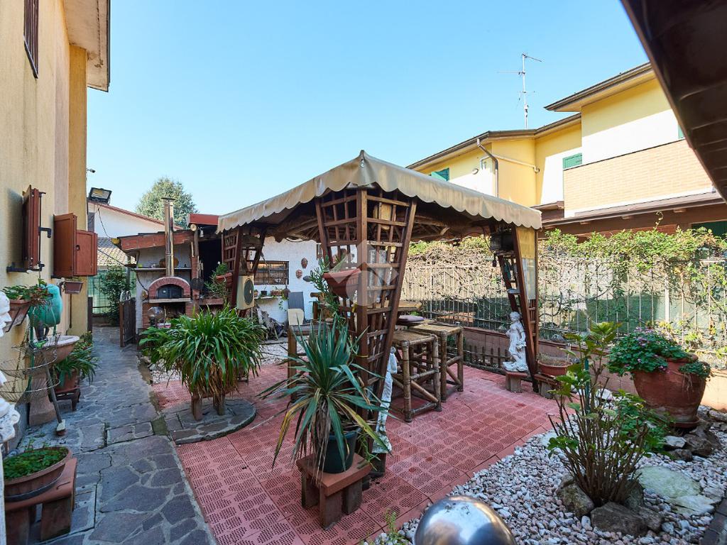 In Via Olanda, il centro del paese è raggiungibile in pochi minuti, la zona, di sole ville, è tranquilla e ben abitata. Costruita alla fine degli anni '60, a partire dal 2009 è stata oggetto di lavori volti all'efficientamento energetico della struttura. Tra i lavori eseguiti sono presenti il cappotto termico,i serramenti interni ed esterni, l'impianto fotovoltaico da 3 KW, inoltre è stato installato il sistema di videosorveglianza. La casa è disposta su due piani, attualmente uniti da scala interna, anche se ogni piano ha anche ingresso indipendente, è quindi possibile ottenere due unità abitative distinte, una al piano terra ed una al primo piano. Attualmente al piano terra ci sono un soggiorno doppio con camino, la cucina abitabile, il bagno e la lavanderia, data l'ampia metratura è possibile dividere il soggiorno e ricavare la camera da letto. Al piano primo ci sono tre camere da letto, la cucina abitabile ed il bagno, è possibile sfruttare gli ambienti a proprio piacimento, utilizzando una camera per ampliare la zona giorno. Tra i punti forti di questa soluzione abitativa c'è lo spazio esterno di circa 200 mq che si sviluppa su tre lati ed è piastrellato nella parte frontale e laterale, invece sul retro è stato messo un forno a legna, un barbecue e una zona per il pranzo. Lateralmente è presente il posto auto, attualmente è stata montata una struttura rimuovibile per riparare l'auto. Nel complesso l'immobile si presenta in buone condizioni e necessiterebbe di qualche lavoro per essere adattato ad esigenze di tipo personale. Completa la proprietà il box auto all'interno del cortile privato.