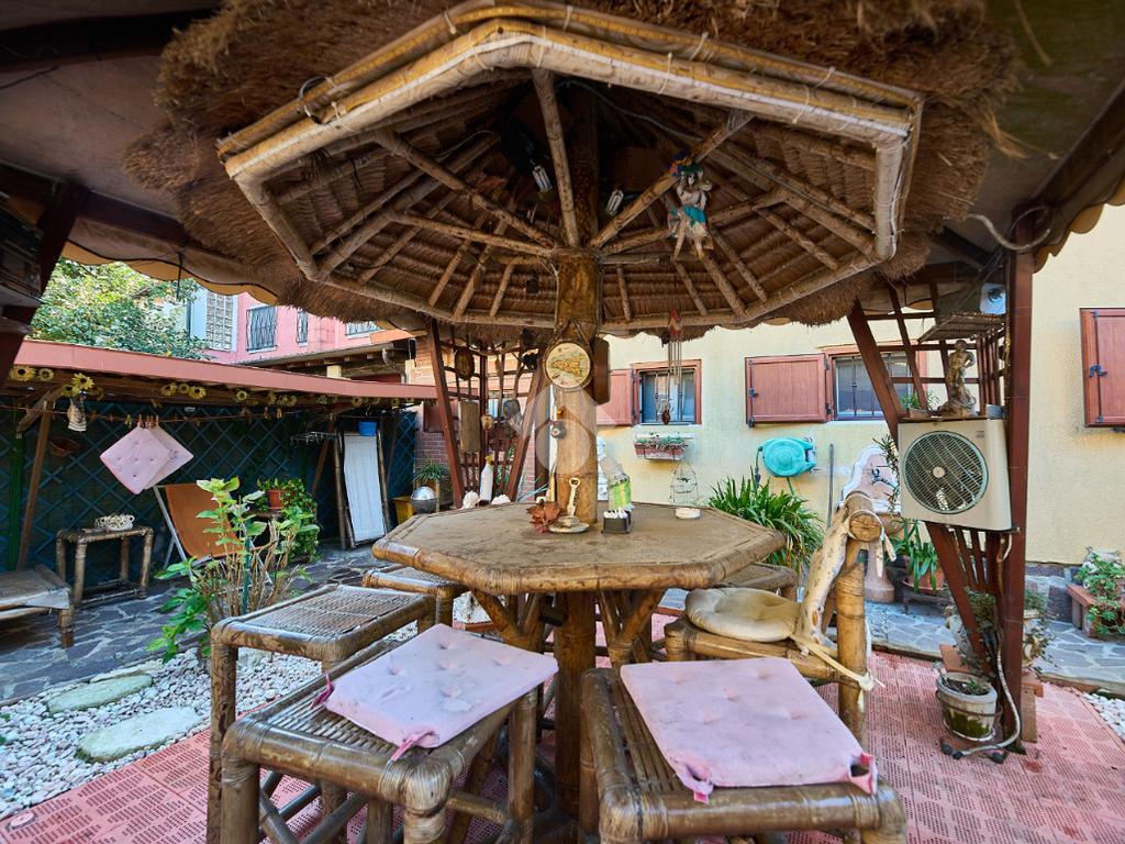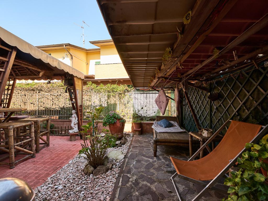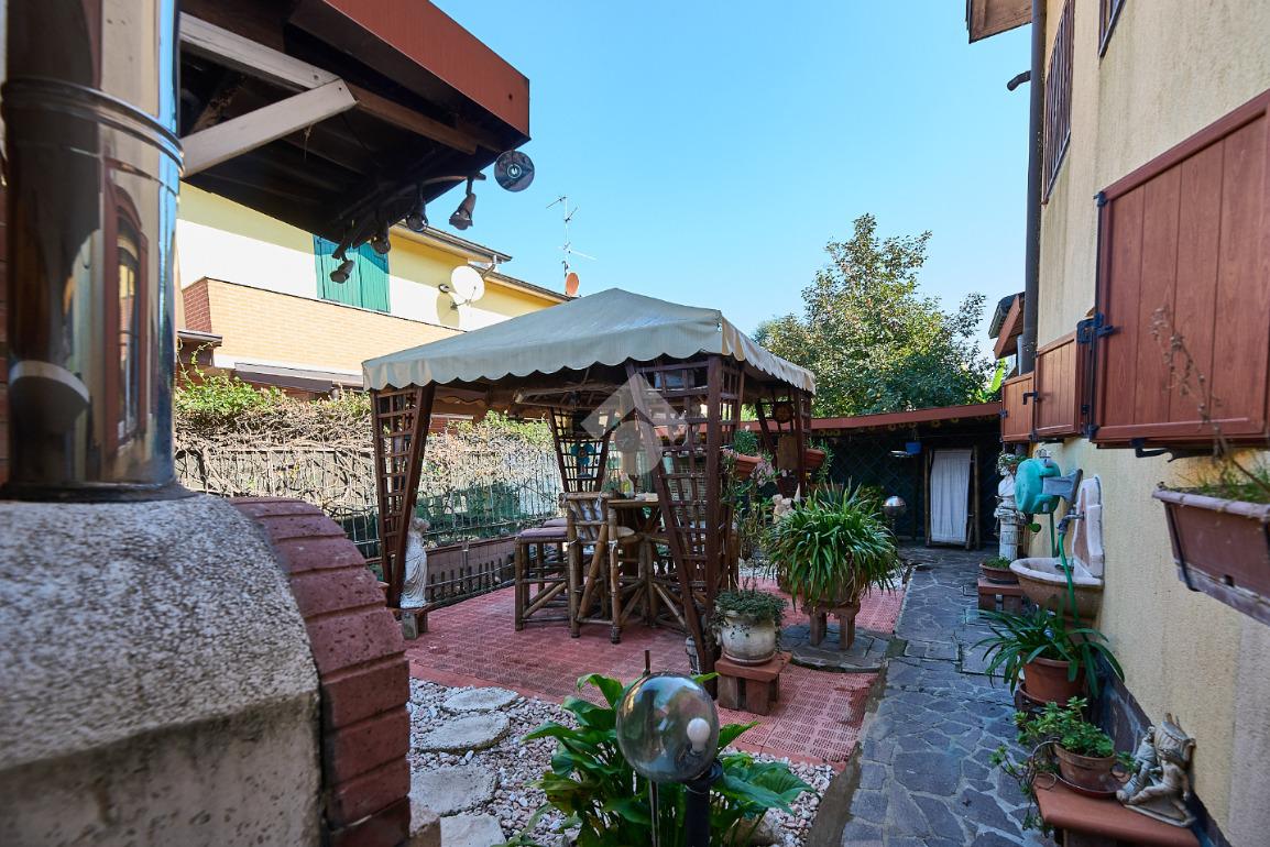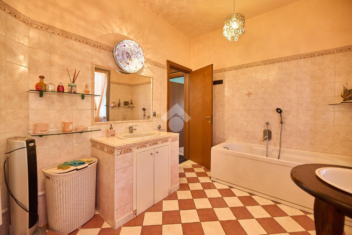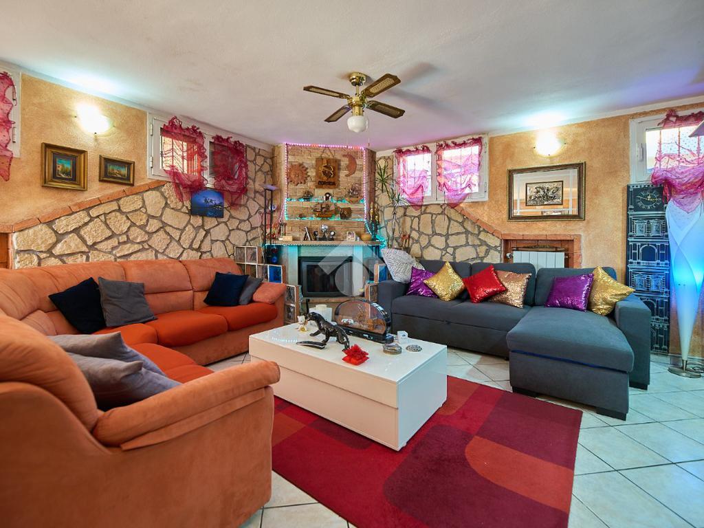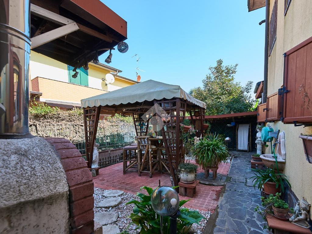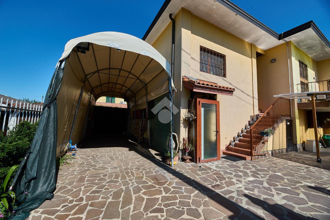 In Via Olanda, il centro del paese è raggiungibile in pochi minuti, la zona, di sole ville, è tranquilla e ben abitata. Costruita alla fine degli anni '60, a partire dal 2009 è stata oggetto di lavori volti all'efficientamento energetico della struttura. Tra i lavori eseguiti sono presenti il cappotto termico,i serramenti interni ed esterni, l'impianto fotovoltaico da 3 KW, inoltre è stato installato il sistema di videosorveglianza. La casa è disposta su due piani, attualmente uniti da scala interna, anche se ogni piano ha anche ingresso indipendente, è quindi possibile ottenere due unità abitative distinte, una al piano terra ed una al primo piano. Attualmente al piano terra ci sono un soggiorno doppio con camino, la cucina abitabile, il bagno e la lavanderia, data l'ampia metratura è possibile dividere il soggiorno e ricavare la camera da letto. Al piano primo ci sono tre camere da letto, la cucina abitabile ed il bagno, è possibile sfruttare gli ambienti a proprio piacimento, utilizzando una camera per ampliare la zona giorno. Tra i punti forti di questa soluzione abitativa c'è lo spazio esterno di circa 200 mq che si sviluppa su tre lati ed è piastrellato nella parte frontale e laterale, invece sul retro è stato messo un forno a legna, un barbecue e una zona per il pranzo. Lateralmente è presente il posto auto, attualmente è stata montata una struttura rimuovibile per riparare l'auto. Nel complesso l'immobile si presenta in buone condizioni e necessiterebbe di qualche lavoro per essere adattato ad esigenze di tipo personale. Completa la proprietà il box auto all'interno del cortile privato.
