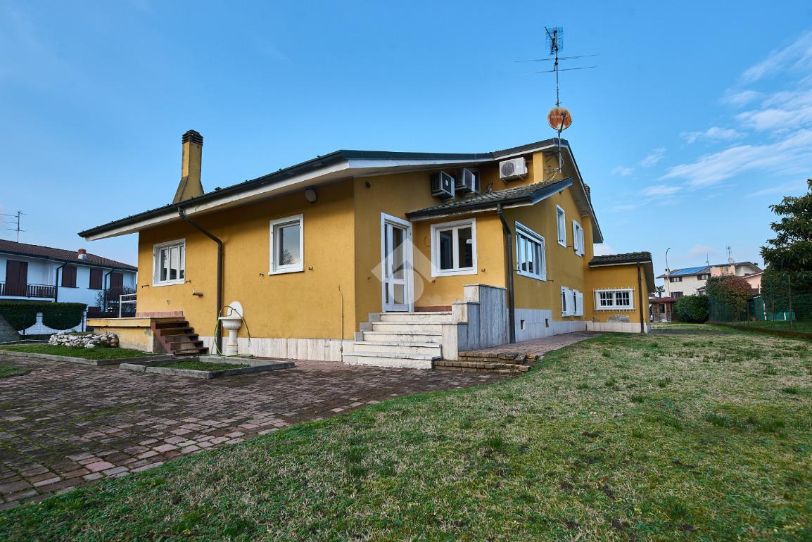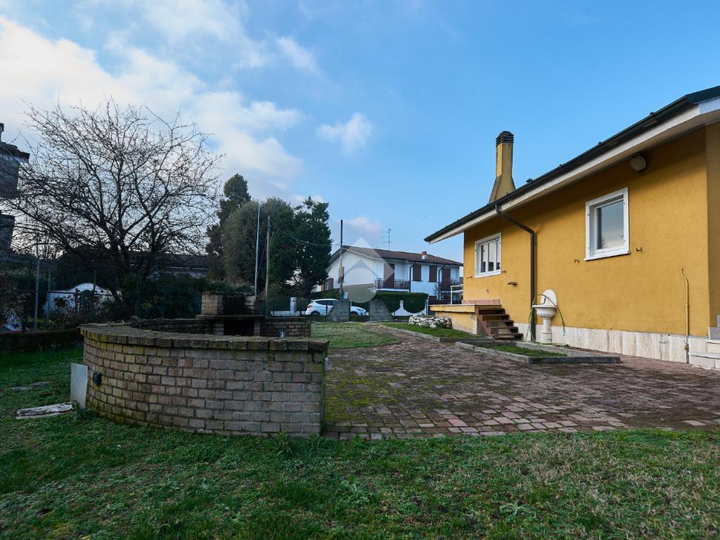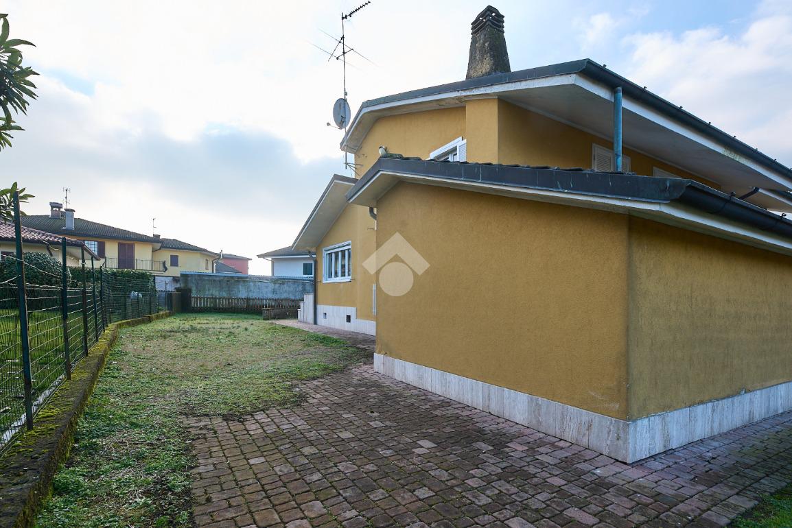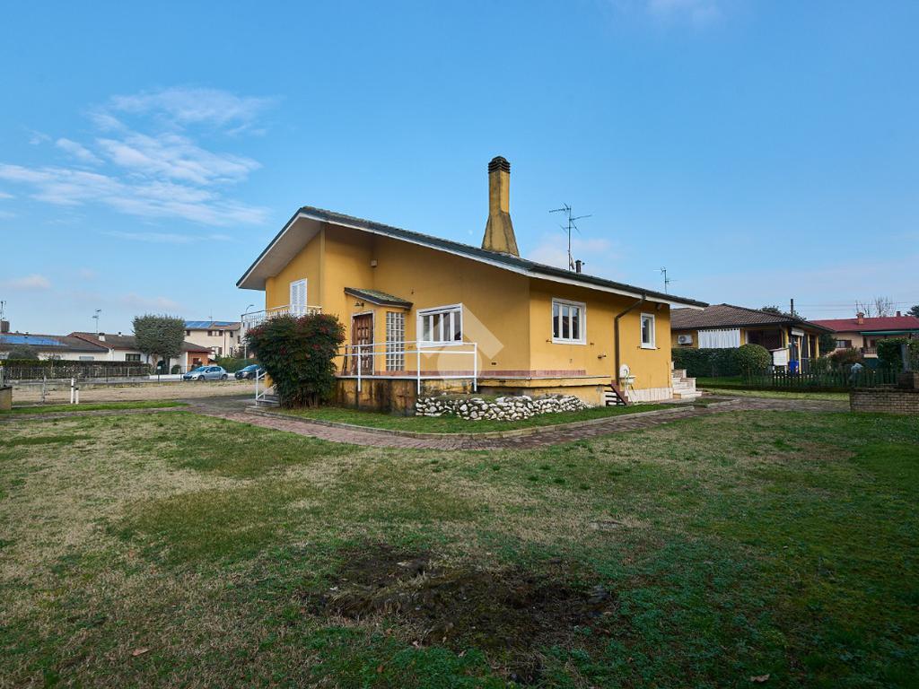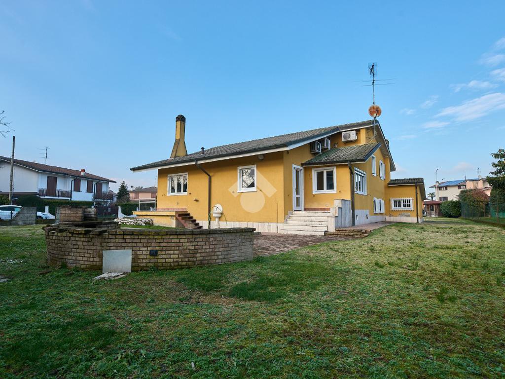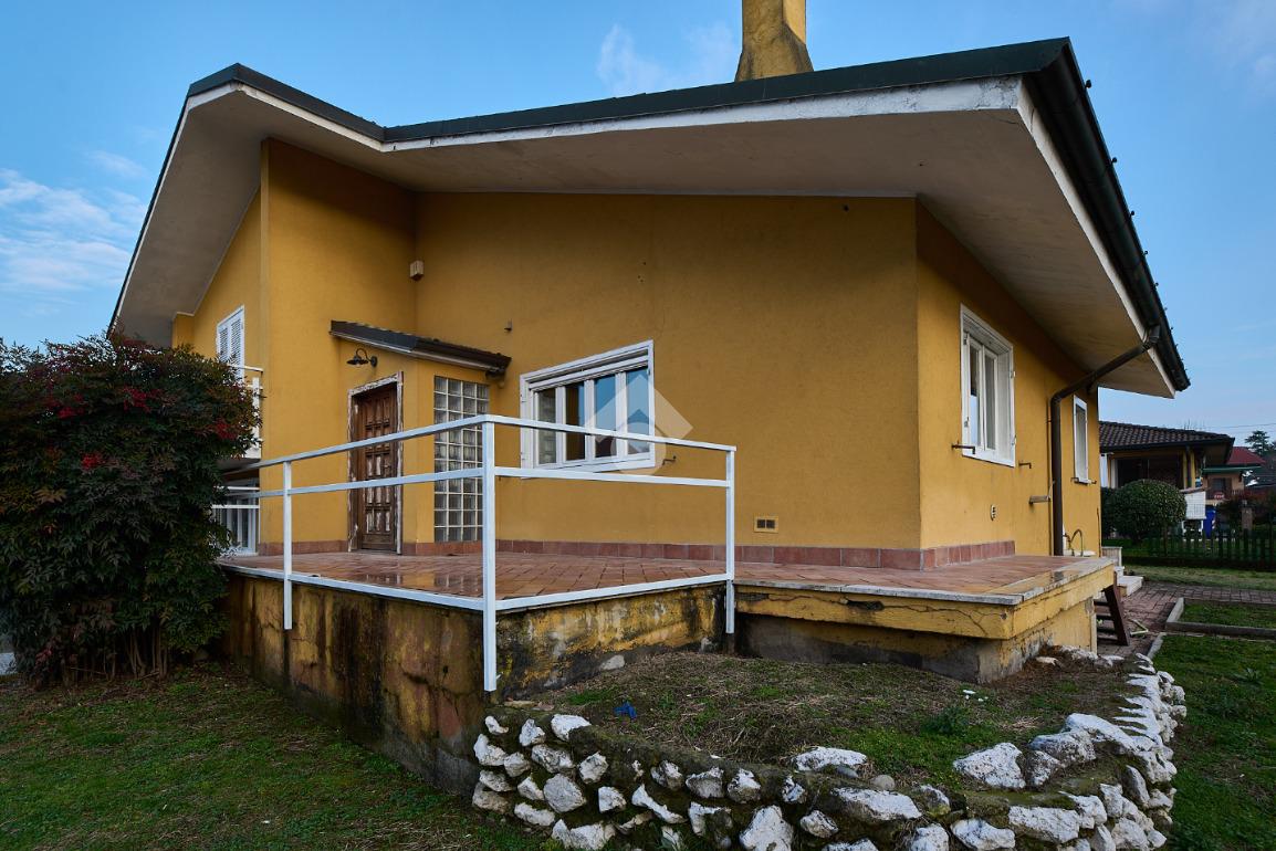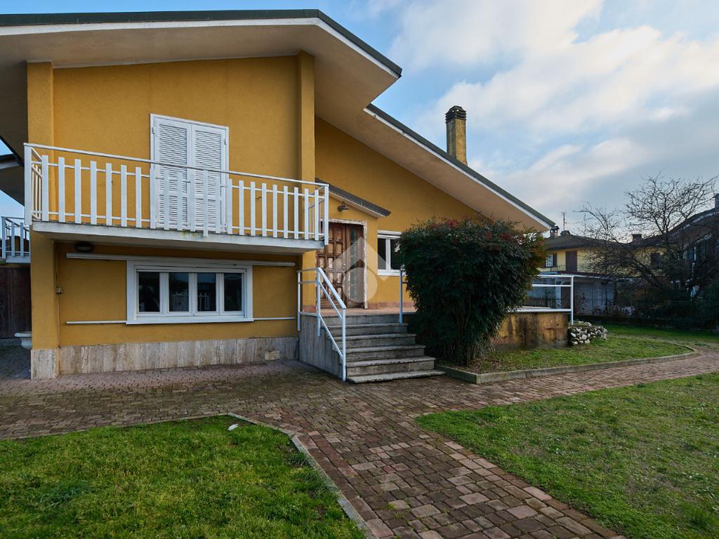 Al 'Villaggio Europa', circondata dal giardino privato di 450 mq, questa villa costruita negli anni '70 e libera subito è appena stata imbiancata e risistemata. Dotata di serramenti in legno e parquet in tutte le stanze, è elegante e luminosa, al suo interno la zona giorno e la zona notte sono separate da un dislivello di qualche gradino, un gioco di altezze che cra movimento mantendendo praticità e riservatezza. Dal piano strada un vialetto accompagna ai gradini davanti al portoncino d'ingresso, dove si trova il terrazzo di 20 mq. L'ingresso è nella sala da pranzo con stufa a pellet, dalla sala si accede alla cucina abitabile, alla zona notte e al piano seminterrato in cui ci sono la tevernetta con bagno/lavanderia ed il box auto. Nella zona notte ci sono tre camere da letto , un bagno e un sottotetto che può essere utilizzato come studio o locale-hobby. Sicuramente il punto di forza di questa soluzione è l'ampio giardino esposto a sud, con la possibilità di mettere una piscina interrata.