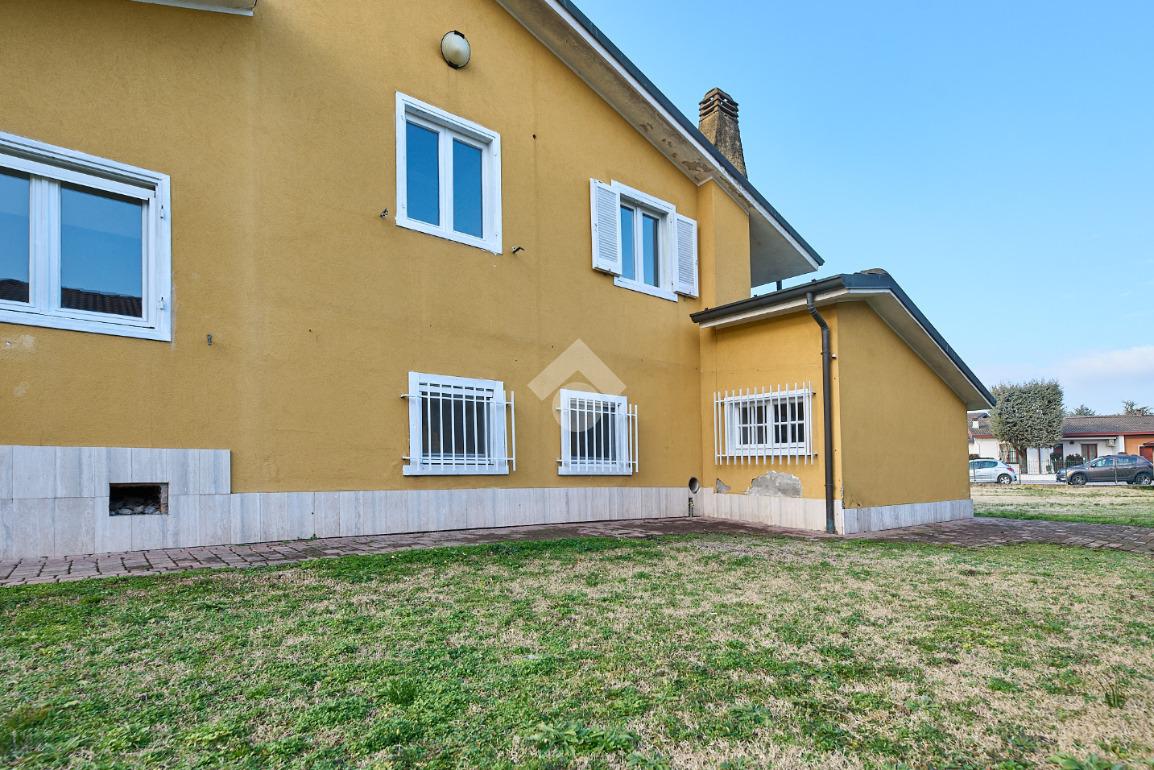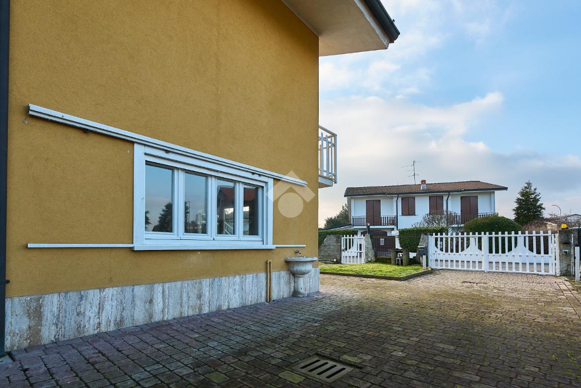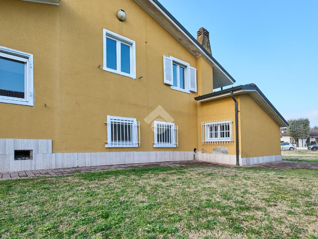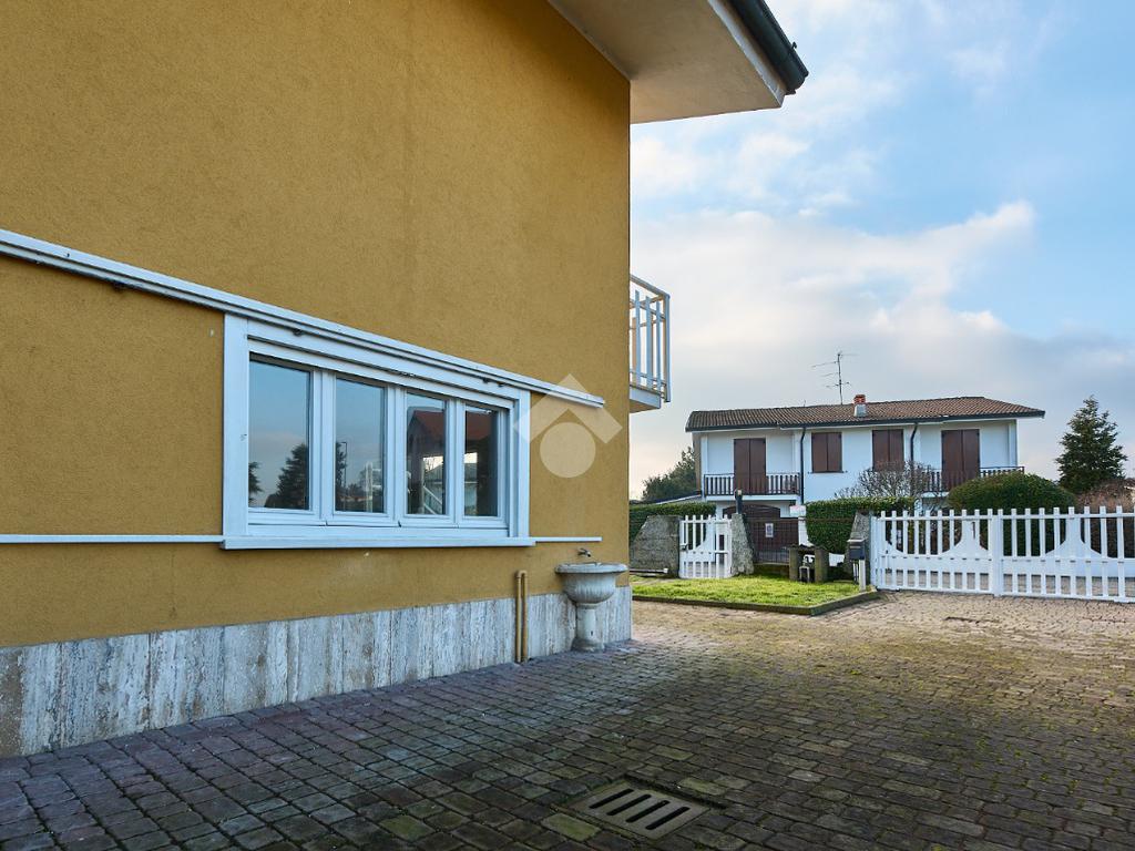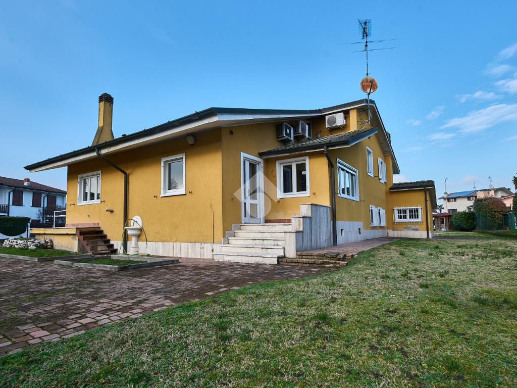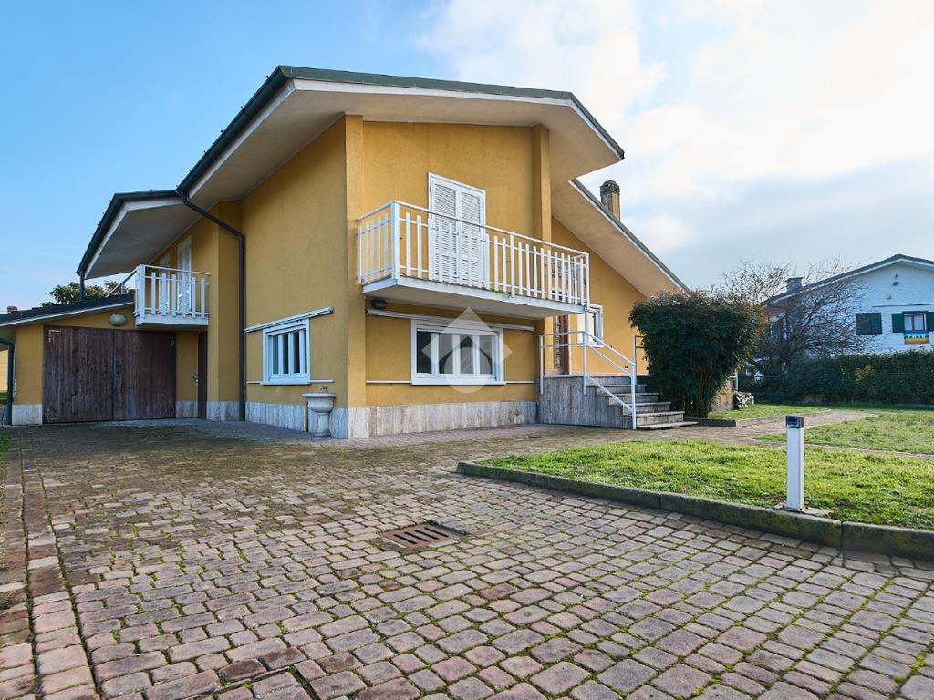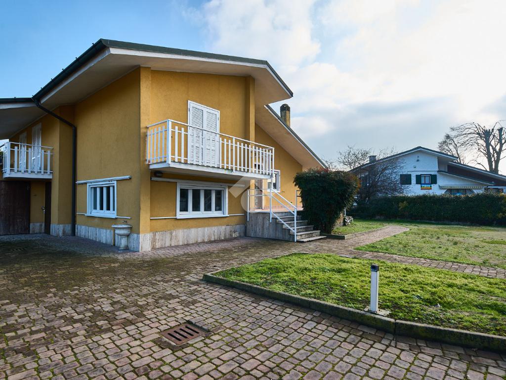 Al 'Villaggio Europa', circondata dal giardino privato di 450 mq, questa villa costruita negli anni '70 e libera subito è appena stata imbiancata e risistemata. Dotata di serramenti in legno e parquet in tutte le stanze, è elegante e luminosa, al suo interno la zona giorno e la zona notte sono separate da un dislivello di qualche gradino, un gioco di altezze che cra movimento mantendendo praticità e riservatezza. Dal piano strada un vialetto accompagna ai gradini davanti al portoncino d'ingresso, dove si trova il terrazzo di 20 mq. L'ingresso è nella sala da pranzo con stufa a pellet, dalla sala si accede alla cucina abitabile, alla zona notte e al piano seminterrato in cui ci sono la tevernetta con bagno/lavanderia ed il box auto. Nella zona notte ci sono tre camere da letto , un bagno e un sottotetto che può essere utilizzato come studio o locale-hobby. Sicuramente il punto di forza di questa soluzione è l'ampio giardino esposto a sud, con la possibilità di mettere una piscina interrata.