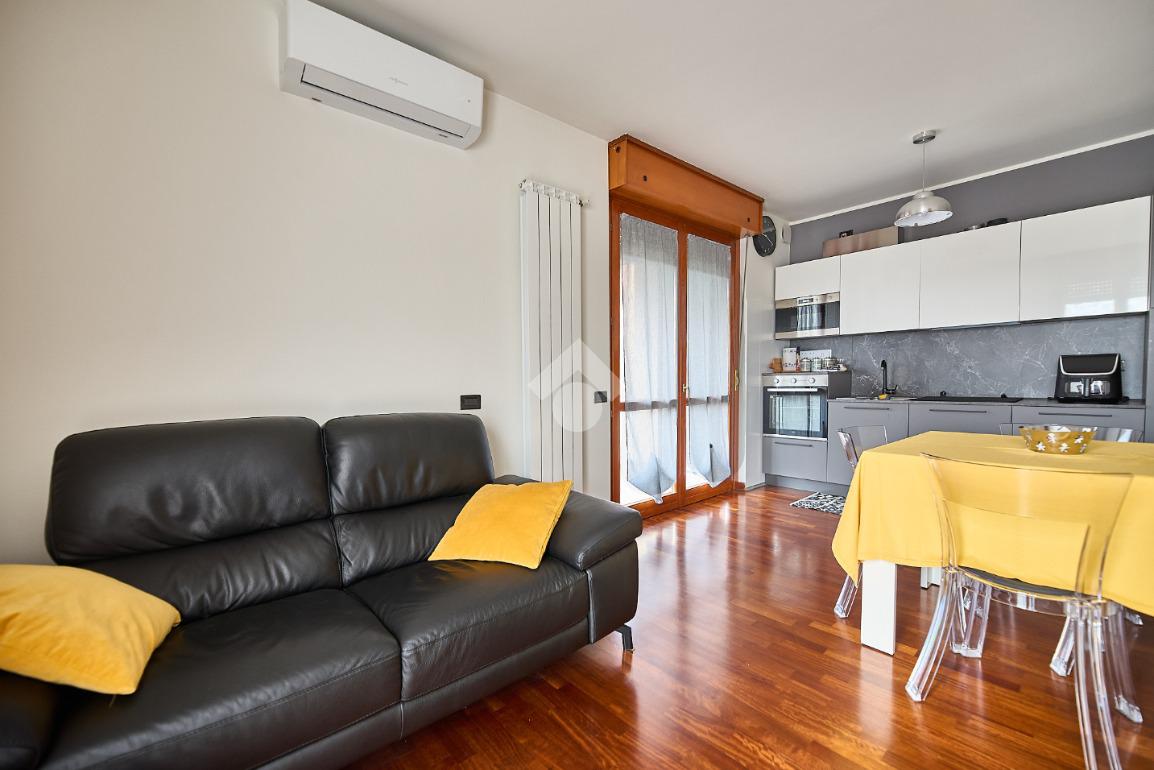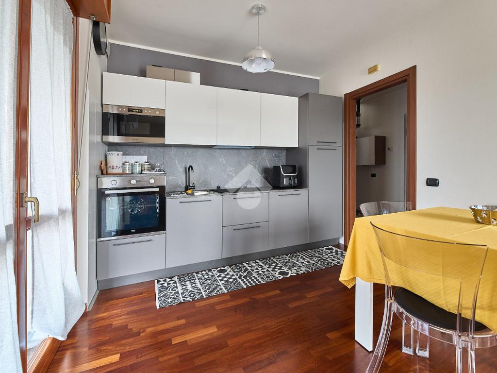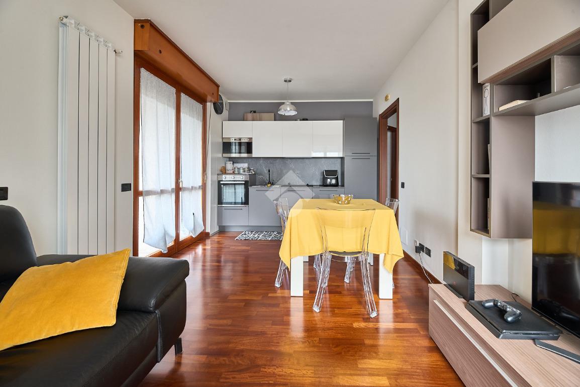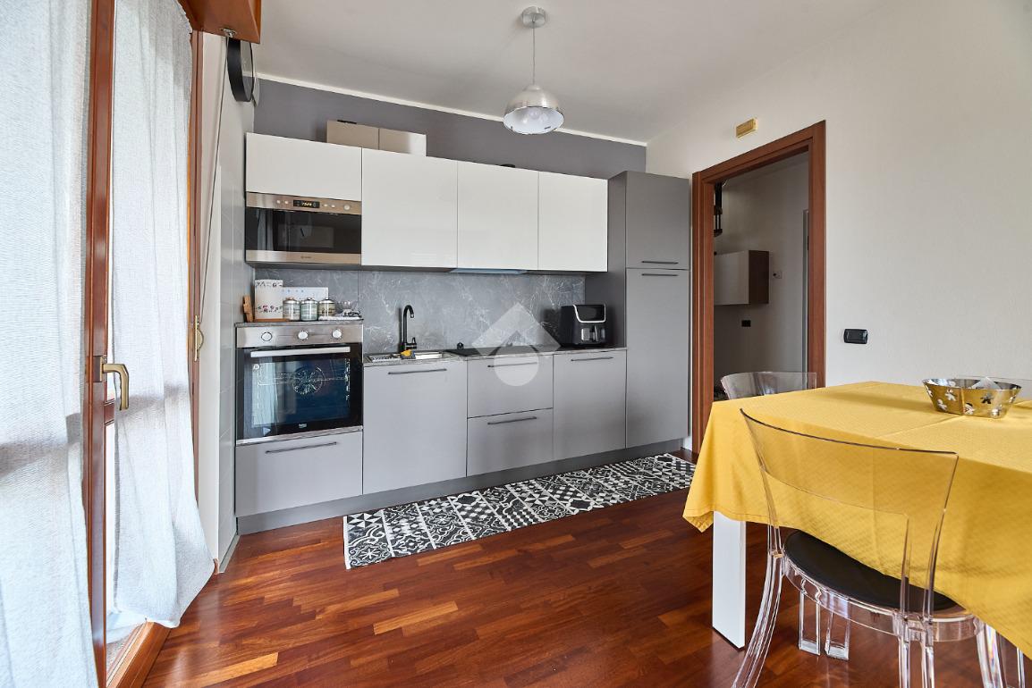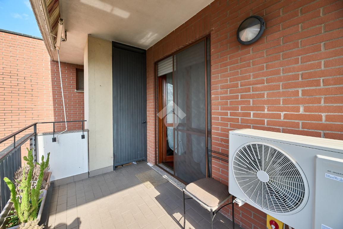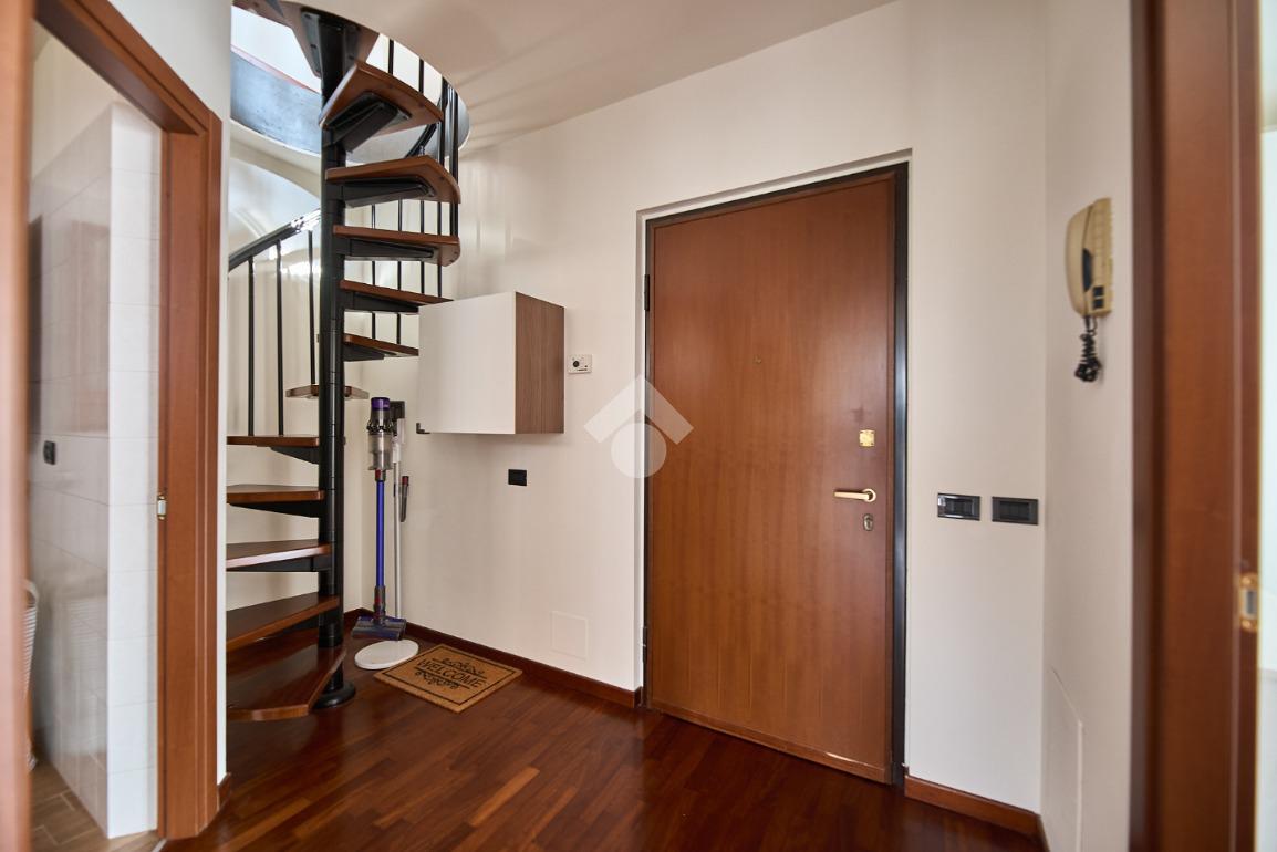 In Via Oreglio, in centro paese, una via poco trafficata ma comoda a tutti i servizi. La palazzina è stata costruita alla fine degli anni '90 ed ha l'ascensore, fa parte di un piccolo complesso con verde condominiale, tuttavia le spese di gestione sono contenute. L'appartamento sarà libero a Dicembre 2026, si trova al terzo ed ultimo piano ed è disposto su due livelli. Si tratta di un appartamento tenuto molto bene e con il bagno ristruttutrato di recente, dotato di parquet in tutti gli ambienti , impianto di aria condizionata e tende da sole sul terrazzino. L'ingresso è nel disimpegno che accompagna a tutte le stanze ed in cui è presente una scala che accompagna al piano mansardato. Al terzo piano ci sono la sala con cucina lineare a vista e portafinestra che dà accesso al terrazzino. Il terrazzino è ampio e sfruttabile, c'è lo spazio per mettere un tavolino o un salottino in cui rilassarsi nella bella stagione. Il bagno ha la doccia con piatto doppio e la finestra. La camera da letto è matrimoniale e luminosa. Al piano mansardato c'è un piccolo locale open space finestrato, utilizzabile come studio o spazio per lo smart working o per eventuali ospiti. Completano la proprietà la cantina e il box auto.
