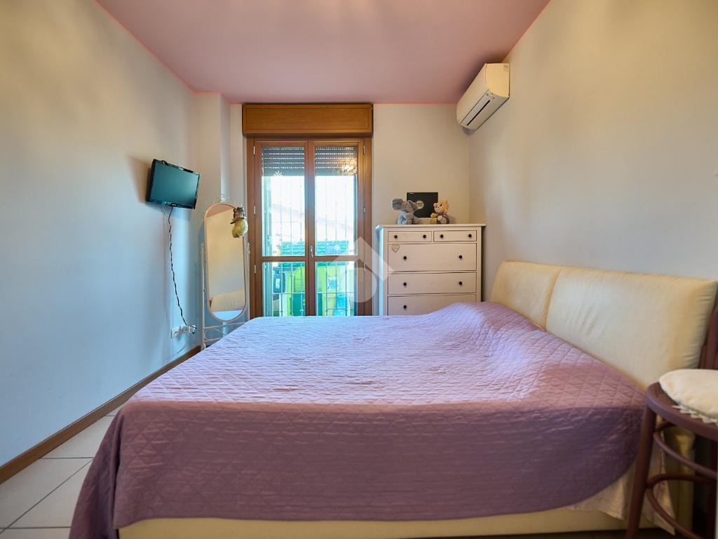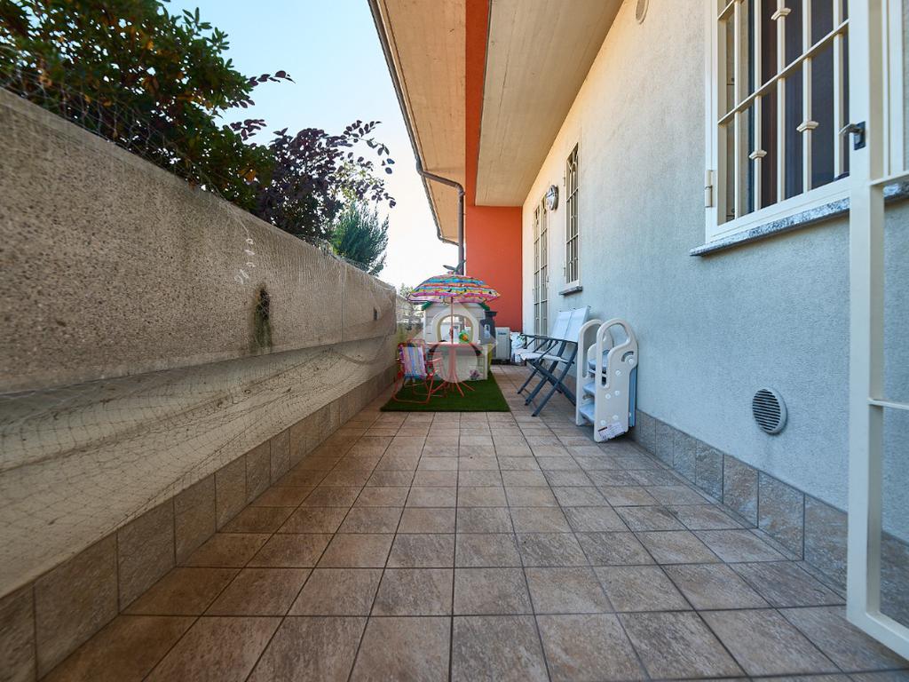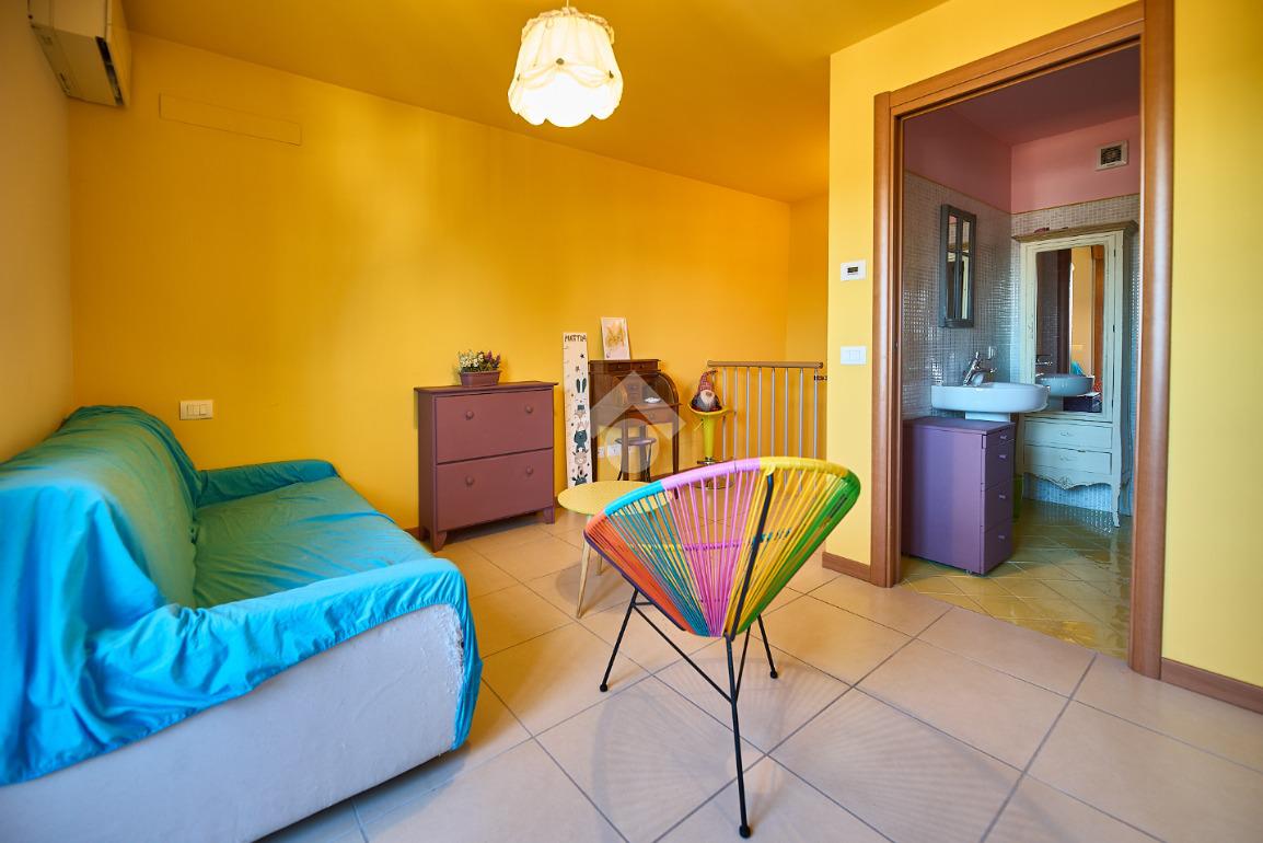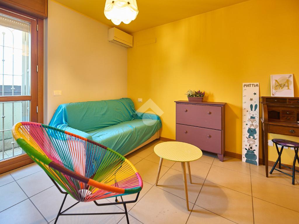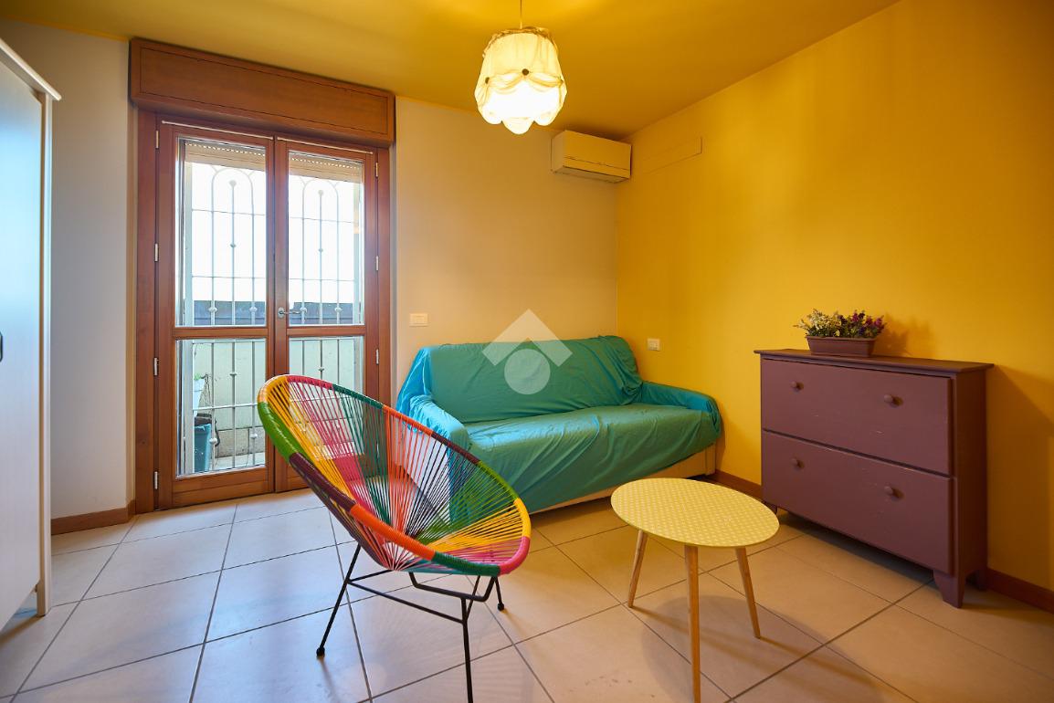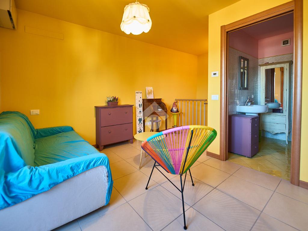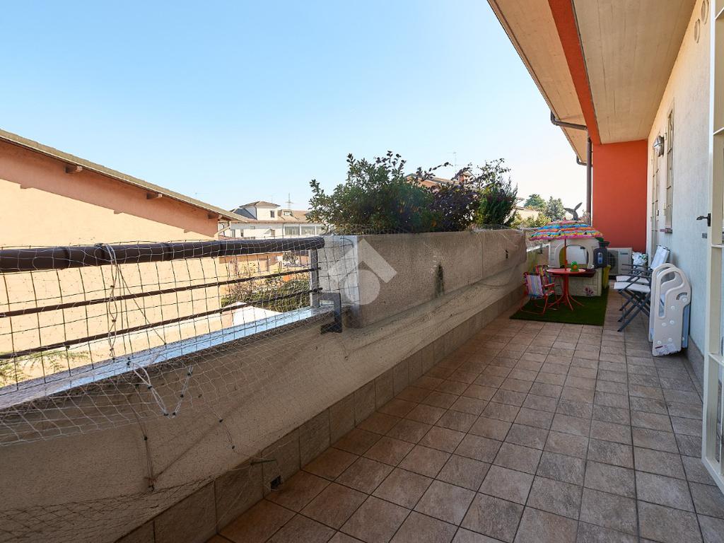 In Via Dante, a pochi poassi dal supermercato e dalla fermata dell'autobus, il polo scolastico e la piazza centrale sono raggiungibili a piedi. L'appartamento è distribuito su due livelli e si trova al primo piano di una palazzina costruita nel 2013 e dotata di ascensore, realizzata nel rispetto delle normative sul risparmio energetico, quindi attrezzata di cappotto termico, ventilazione meccanica, impianto solare termico e riscaldamento a pavimento. L'ingresso è nella zona living con cucina a vista e portafinestra che dà accesso al terrazzo di 20 mq. Dalla zona living si accede al disimpegno che accompagna al bagno, alla camera e alla scala che porta al piano superiore. Il bagno ha la doccia e la finestra, la camera da letto è matrimoniale e grande abbastanza da ospitare anche un lettino qualora ce ne fosse bisogno. Al piano superiore è presente una cameretta con un piccolo balcone e una lavanderia con la doccia. Questa soluzione è l'ideale per chi necessita di uno spazio per lo smart working o per chi ha bisogno di una seconda camera per gli ospiti o i figli grandi. L'appartamento è in ottimo stato, ben tenuto e all'interno di un complesso signorile. Completano la proprietà la cantina ed il box auto.