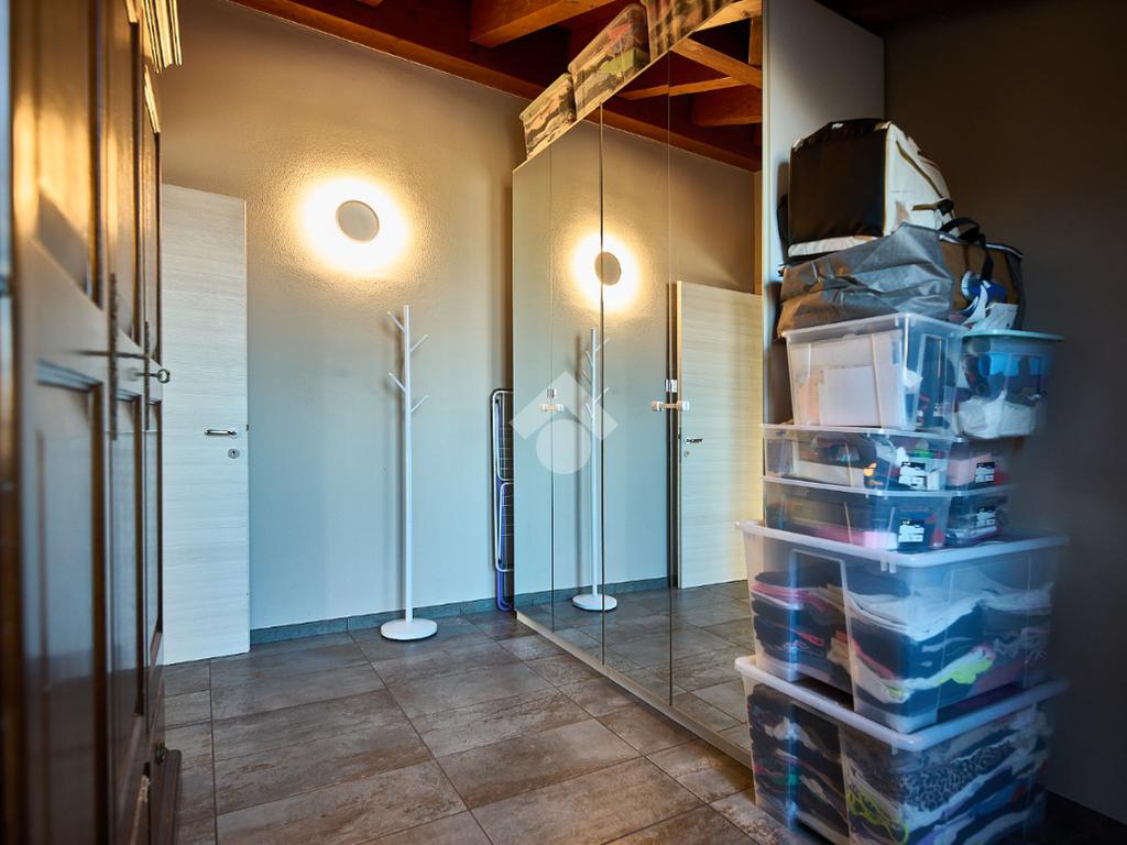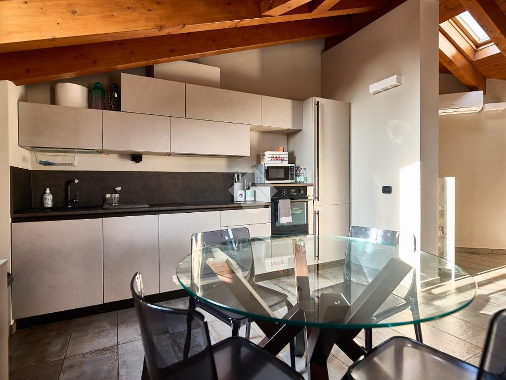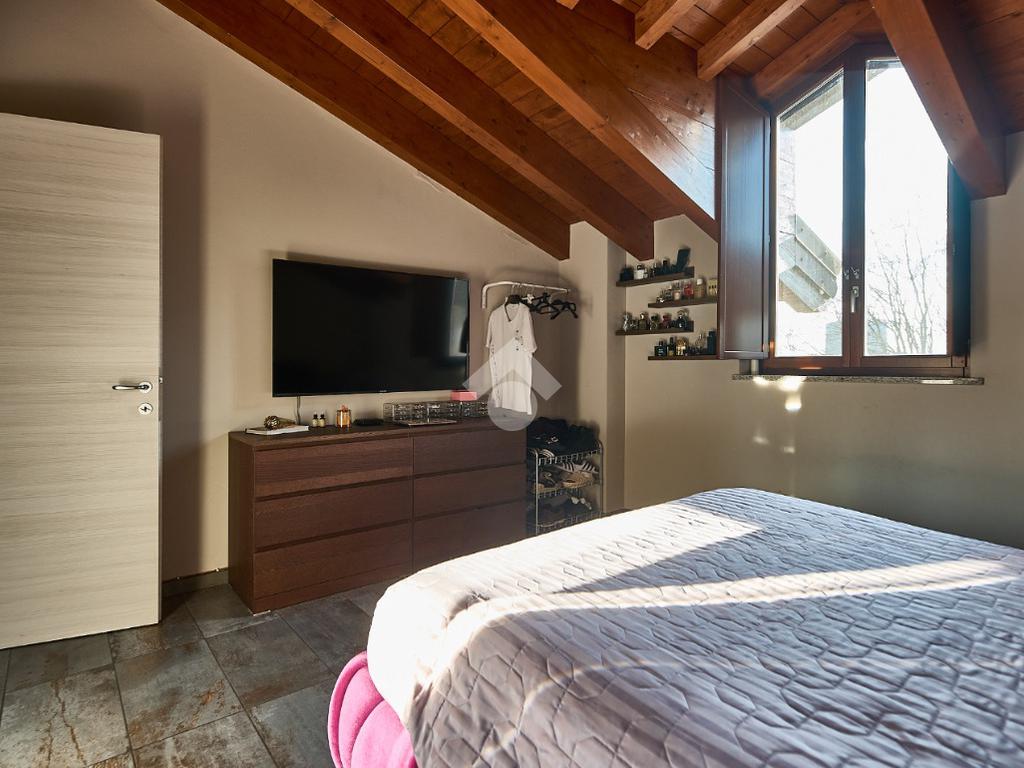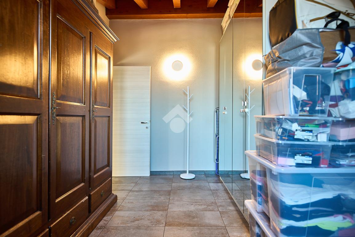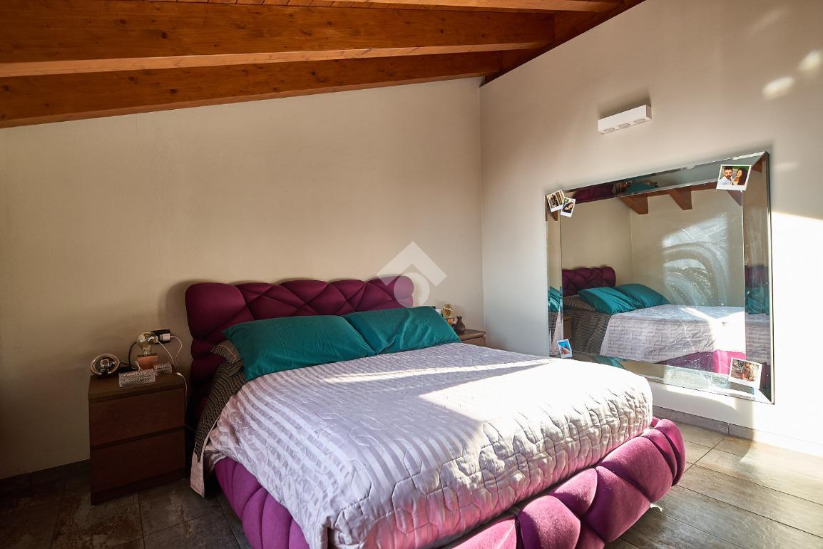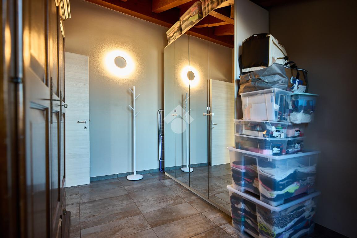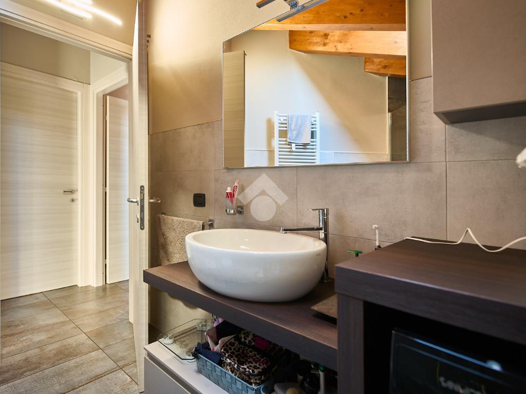 In centro paese, tutti i servizi sono comodamente raggiungibili a piedi, appena sotto casa sono presenti bar e altre attività commerciali, fermata dell'autobus, un parchetto e il supermercato poco più avanti. La palazzina è stata costruita nel 2010 e l'appartamento si trova al secondo ed ultimo piano, quindi ha il soffitto in legno con travi a vista e un terrazzino di 15 mq con affaccio su un'area verde, quindi molto tranquillo. L'ingresso è nella zona living, ampia e molto luminosa, con spazi ben distribuiti tra la zona da pranzo con cucina a vista e la zona relax con divano e tv. Dalla zona giorno un disimpegno accompagna alle camere da letto ed al bagno. Le camere sono due, una matrimoniale ed una singola, il bagno ha il lucernario e una doccia con piatto doppio. Trattandosi di un appartamento di costruzione recente è dotato di riscaldamento a pavimento, serramenti con doppi vetri e predisposizione per l'impianto di aria condizionata, caratteristiche che lo classificano come appartamento ad alta efficienza energetica e che quindi può essere acquistato con l'ausilio di 'mutuo green', ovvero a tasso agevolato. Questa soluzione abitativa viene venduta completa di cucina, arredo bagno e mobile della cameretta. Completa la proprietà il box auto doppio di 25 mq.