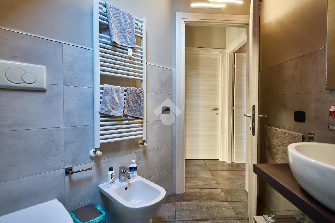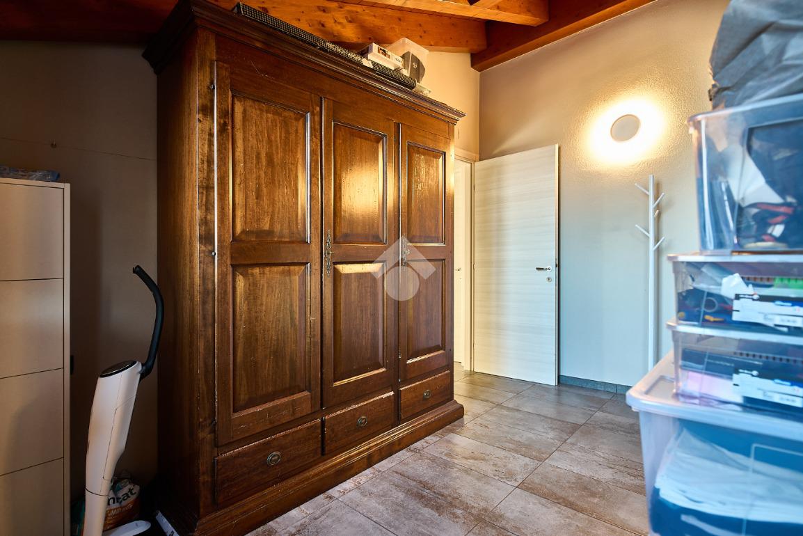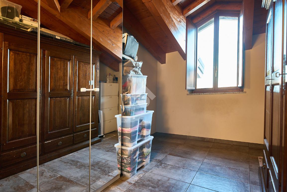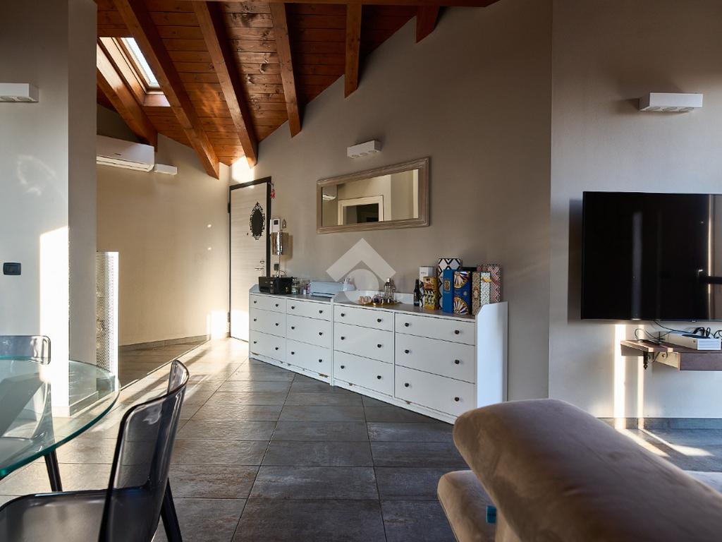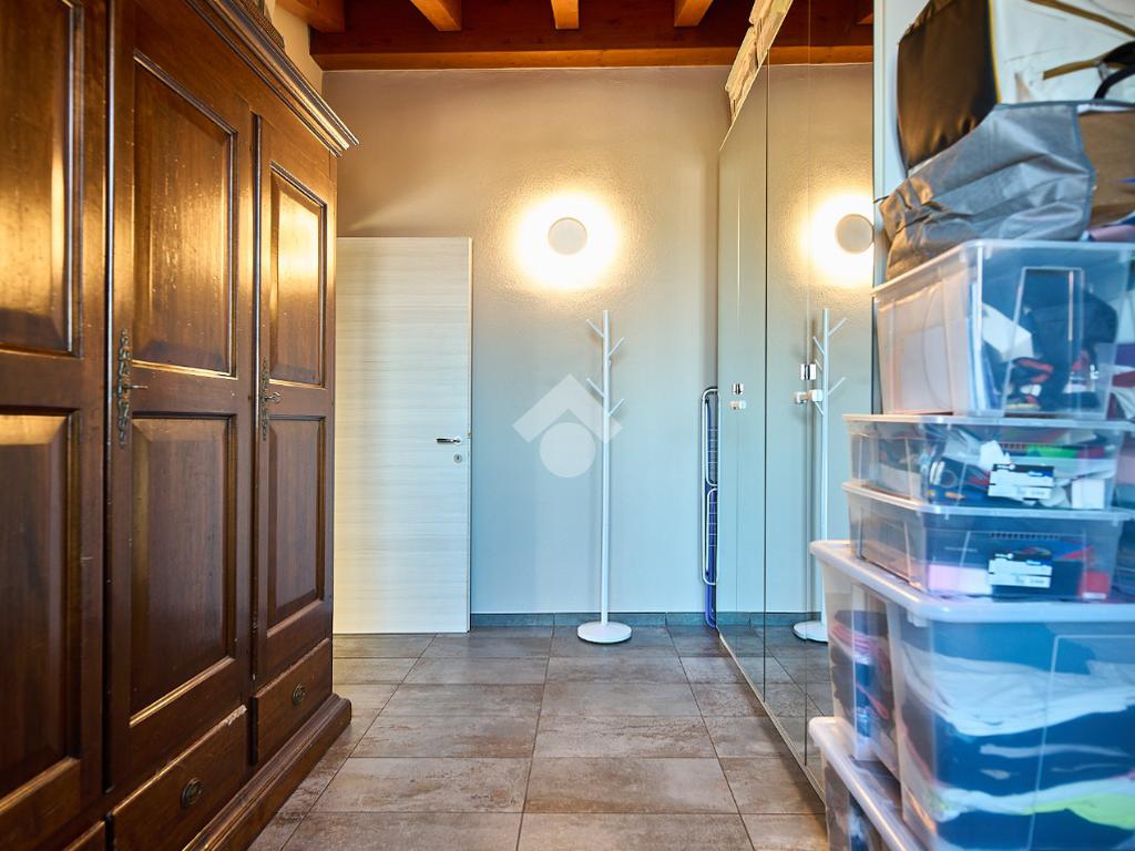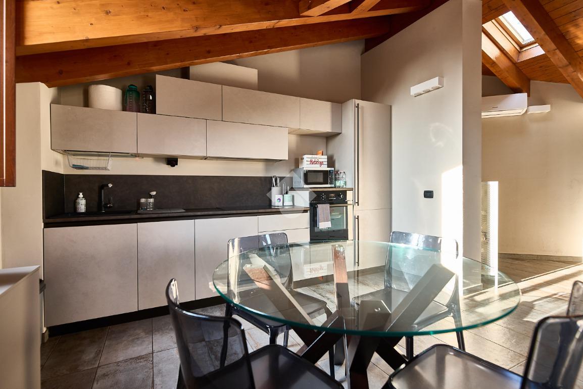In centro paese, tutti i servizi sono comodamente raggiungibili a piedi, appena sotto casa sono presenti bar e altre attività commerciali, fermata dell'autobus, un parchetto e il supermercato poco più avanti. La palazzina è stata costruita nel 2010 e l'appartamento si trova al secondo ed ultimo piano, quindi ha il soffitto in legno con travi a vista e un terrazzino di 15 mq con affaccio su un'area verde, quindi molto tranquillo. L'ingresso è nella zona living, ampia e molto luminosa, con spazi ben distribuiti tra la zona da pranzo con cucina a vista e la zona relax con divano e tv. Dalla zona giorno un disimpegno accompagna alle camere da letto ed al bagno. Le camere sono due, una matrimoniale ed una singola, il bagno ha il lucernario e una doccia con piatto doppio. Trattandosi di un appartamento di costruzione recente è dotato di riscaldamento a pavimento, serramenti con doppi vetri e predisposizione per l'impianto di aria condizionata, caratteristiche che lo classificano come appartamento ad alta efficienza energetica e che quindi può essere acquistato con l'ausilio di 'mutuo green', ovvero a tasso agevolato. Questa soluzione abitativa viene venduta completa di cucina, arredo bagno e mobile della cameretta. Completa la proprietà il box auto doppio di 25 mq.