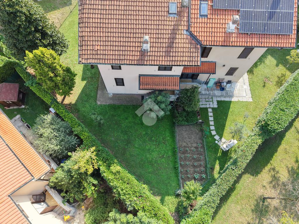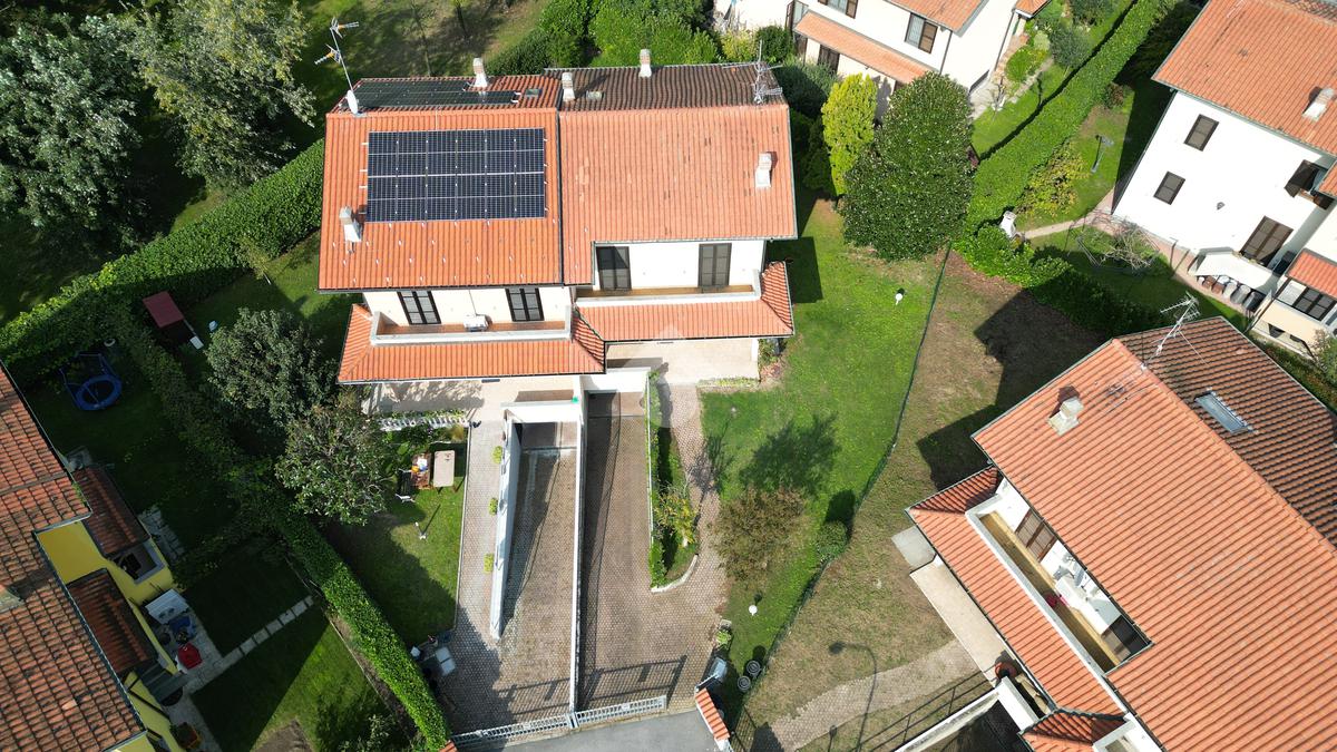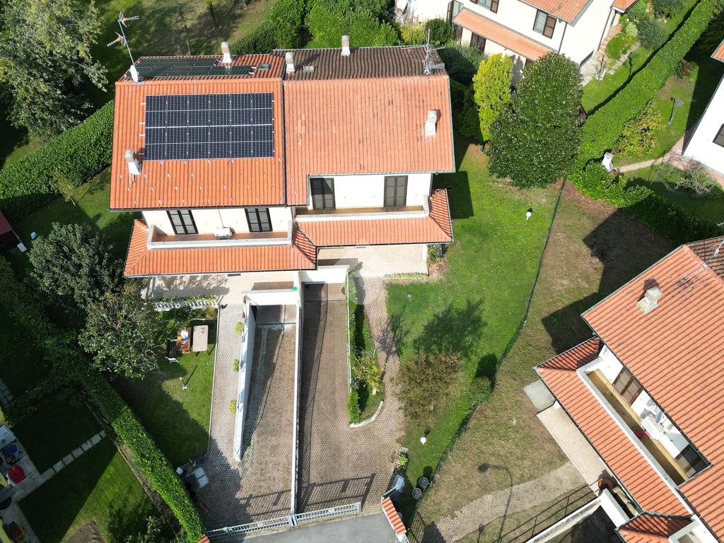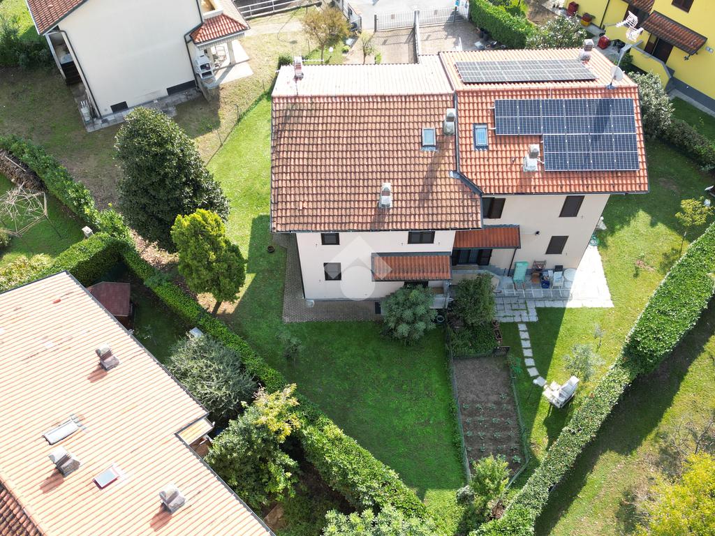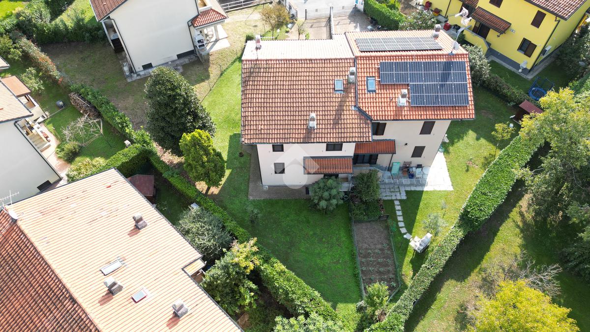 Nelle immediate vicinanze del centro del paese, in un contesto residenziale di sole villette e con tutti i servizi raggiungibili a piedi in pochi minuti. La casa è stata costruita nella fine degli anni'80, si tratta di un abitazione libera su tre lati e disposta su due piani abitativi più sottotetto e seminterrato, è circondata da un giardino privato di 350 mq ed ha un portico di 20 mq davanti al portoncino blindato d'ingresso.