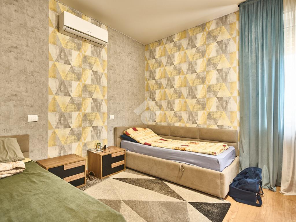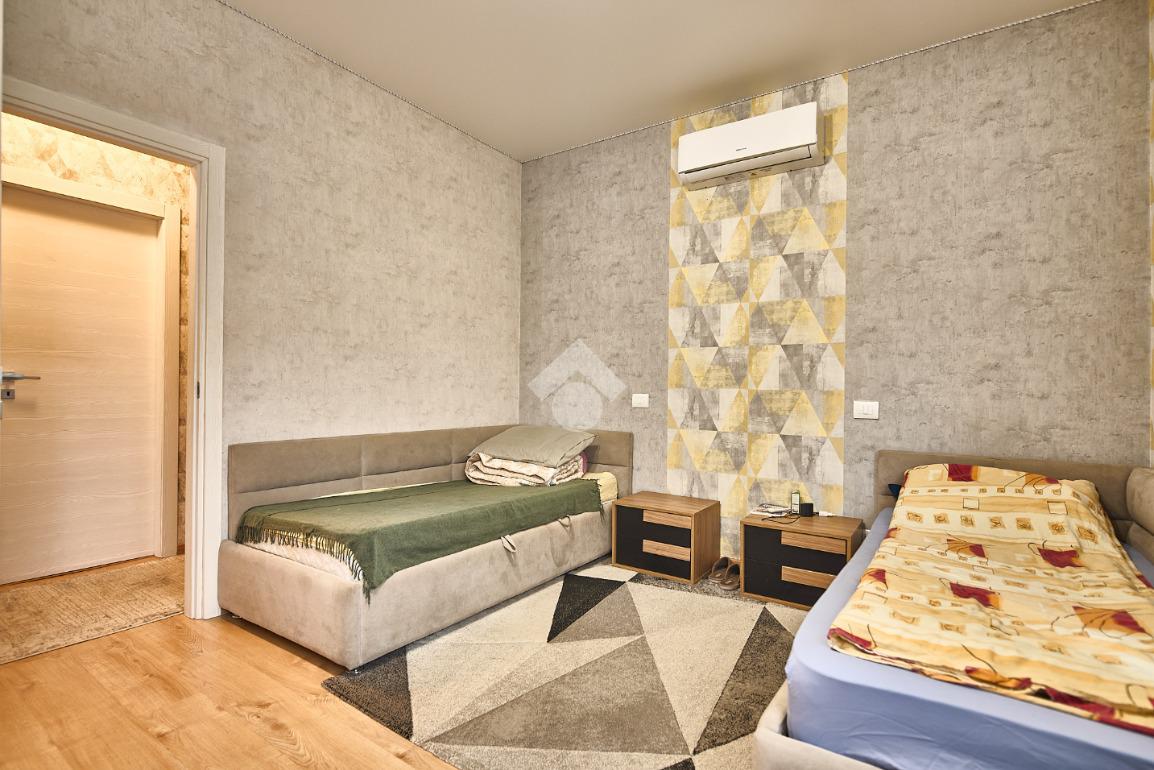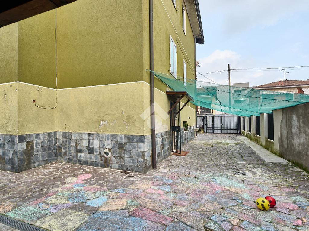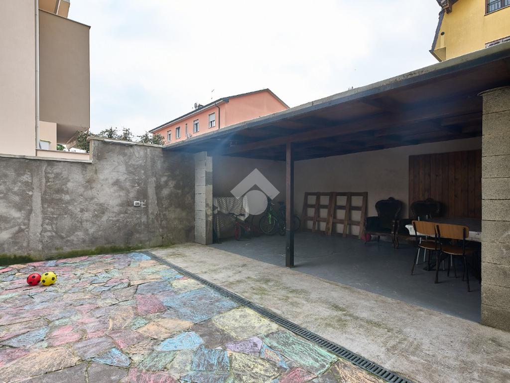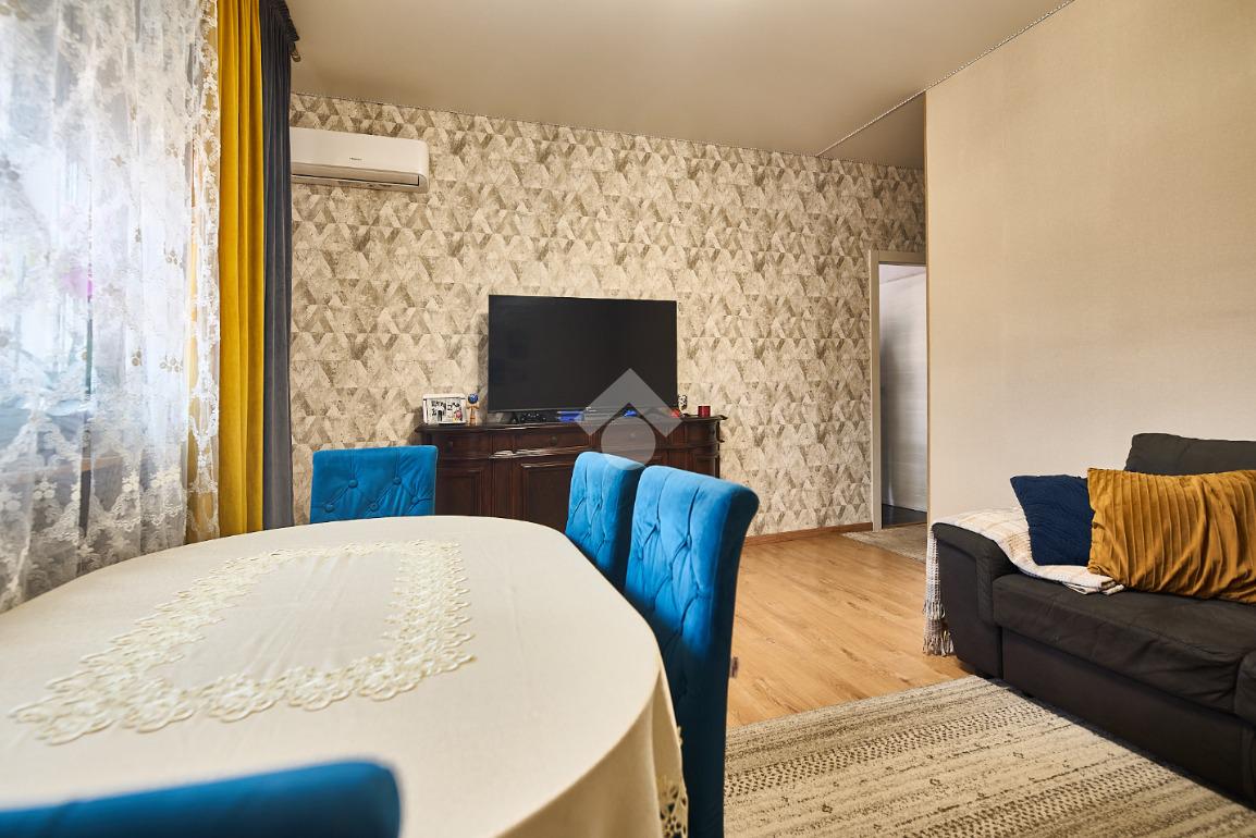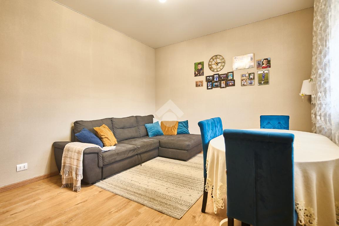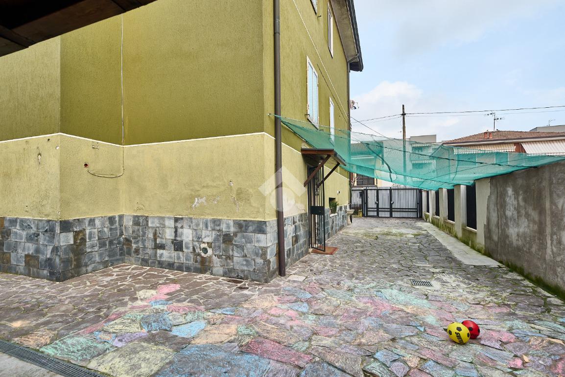 In una via del centro paese, vicino a tutti i servizi ma non nel traffico, in una zona di villette e basse costruzioni. L'appartamento si trova al primo piano di una villa anni'60 con due appartamenti , uno al piano rialzato ed uno al piano primo. L'area esterna è ad uso comune, totalmente piastrellata e sfruttabile. L'appartamento è stato completamente ristrutturato nel 2021 , sono stati montati i serramenti nuovi e la caldaia a condensazione, è stata montata la tenda da sole ed è stato messo un pavimento in laminato nel corridoio, nella sala e nelle camere, anche i rivestimenti di bagni e cucina sono stati rifatti. Le porte interne sono tutte nuove. L'ingresso è nel corridoio che accompagna a tutte le altre stanze. Sono due camere da letto, una matrimoniale con balcone ed una doppia per ragazzi e con la finestra. Il bagno ha la doccia e la finestra. Sala da pranzo e cucina abitabile sono adiacenti, se qualcuno lo desiderasse sarebbe possibile unirli in una zona giorno unica. Il punto di forza dell'immobile è la cantina che è stata adibita atavernetta poichè si trova al piano strada ed è dotata di finestra e portafinestra con affaccio sul cortile. Completa la proprietà il box auto e non ci sono spese di condominio. Una soluzione perfetta per chi cerca indipendenza e tranquillità senza rinunciare alla comodità.